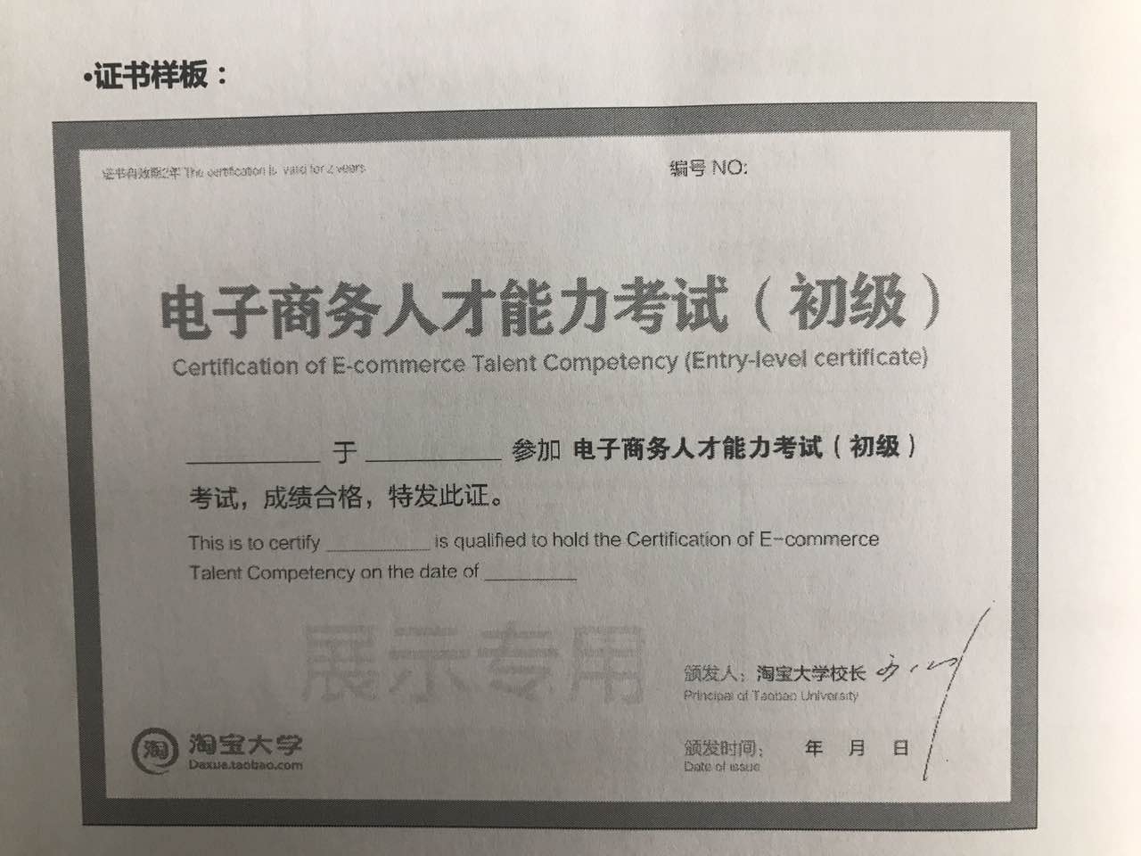 (CETC电子商务人才能力认证证书模板)