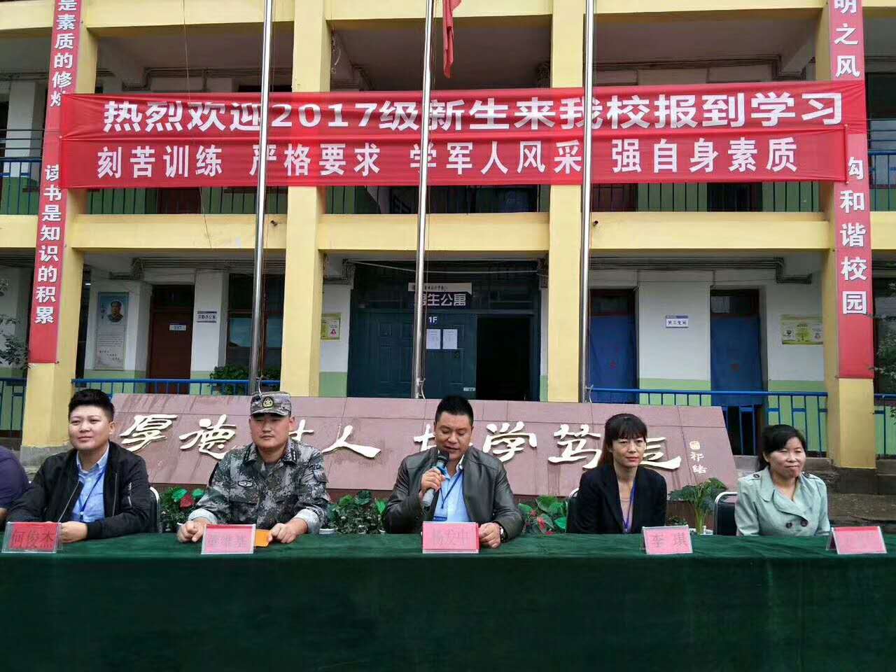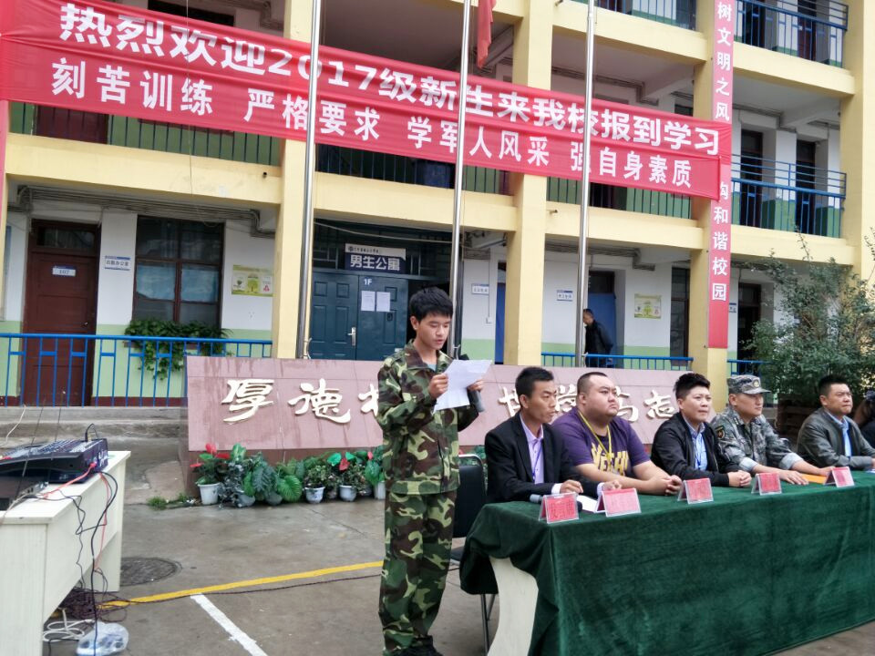 兰州商业会计学校五泉校区2017级新生军训于2017年8月26日再五泉校区正式启动,学校副校长杨发中、校办公室主任李琪、教务部主任赵雪琴、学工部主任何俊杰、学生科科长周老师、校团委杜老师、驻训部队领导、各班班主任及2017及全体新生参加仪式,仪式由杜老师主持。