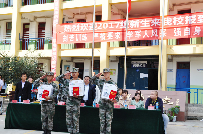2017级新生代表在典礼上衷心感谢了军训教官多日以来言传身教、以身作则的辛勤教导,感谢校领导及老师对新生的关心和照顾。她代表全体受训新生表示,在今后的学习和生活中,一定严格按照军人的标准要求自己,不断提高自身素养,努力做无愧于祖国、学校和自己的优秀学生。