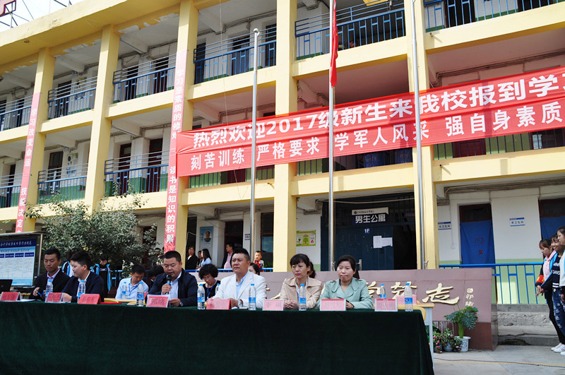 学校学工部何主任代表学校全体教师对2017级新生的到来表示热烈的欢迎,何主任勉励新同学要树立远大、正确的理想,满怀热情、坚定信念、努力学好专业知识,热爱同学、团结友善,以饱满的姿态迎接接下来的校园生活;希望同学们在校园生活中健康快乐,学有所成。(祁校长在开学典礼上致辞) (学工部何主任在开学典礼上发言)