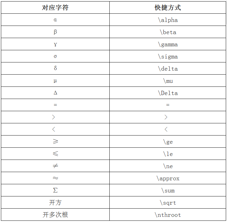 在公式框中输入相应的快捷方式,再输入空格,即可显示出相应的字符。