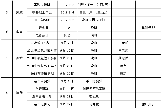 我校九月份开班计划
