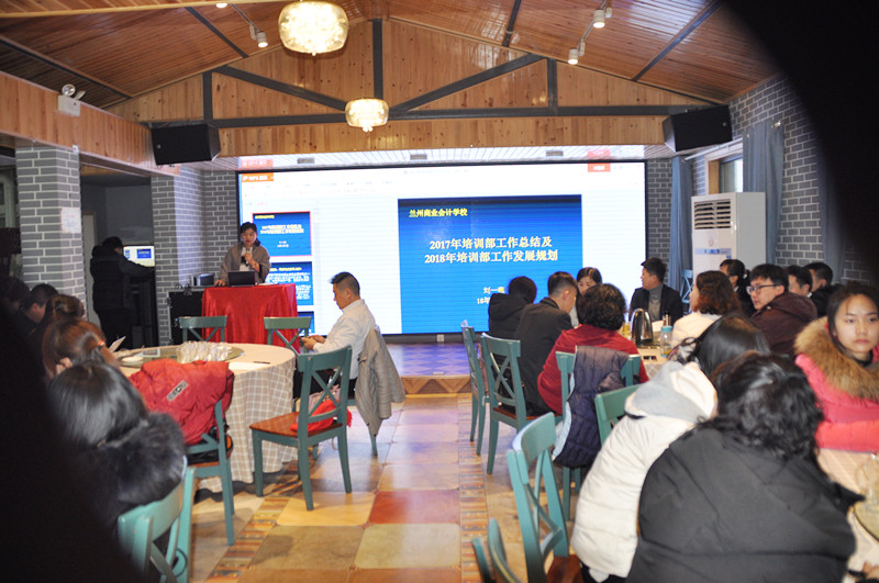 会议第二项,学校教务部赵雪琴主任做2017年教务部工作总结及2018年教务工作规划的汇报,阐述了2017年度教务部在日常教学管理、师资队伍建设、教学开展实施等方面所做的工作,明确了教务部2018年的工作计划,并代表教务部表示将在新的一年中做好教务管理的各项工作,为促进学校的进一步发展不懈努力。 会议第三项,副校长杨发中做兰商精准扶贫培训中心2017年工作总结暨2018年工作展望,杨校长对精准扶贫培训中心2017年全年主要培训成果、培训形式及专业、各市州培训情况、培训项目、培训质量、服务保障、培训资金管理、资料管理、学员日常活动等方面作了详细的汇报,分析了培训中的经验和不足,并对精准扶贫培训中心2018年的工作做了详细的规划。他强调,2018年精准扶贫培训中心将进一步完善和优化培训机构管理,拓展培训业务的范围和培训市场,加强培训服务和管理工作,全力开展扶贫脱贫培训和就业帮扶工作。