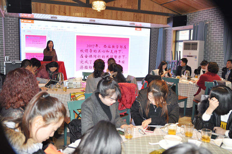会议第一项,副校长刘一燕做2017年培训部工作总结及2018年培训部工作发展规划,刘副校长回顾了2017年学校在校长的带领下组织的各类活动,分析了各教学部主任及员工2017年业绩考核中体现的特色,以精准的数据分析了各分校活动组织情况及课程收入情况。并就2018年的工作从团队建设、环境设施改善、服务提升、安全防范等方面提出了具体的要求,明确了2018年任务考核方式及各教学部任务完成技巧等,刘副校长指出,新的一年,承载新的梦想,开启新的篇章、新的征程,我们要砥砺前行、共创辉煌。