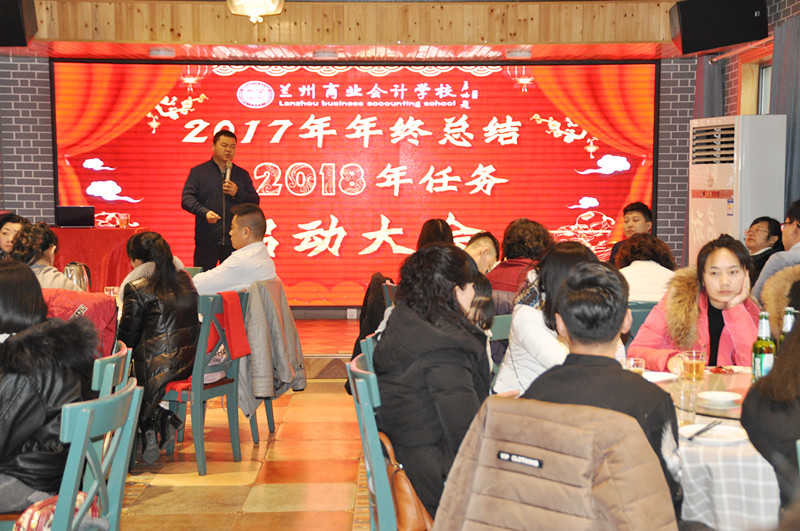 兰州商业会计学校2017年年终总结暨2018年任务启动大会于1月5日上午隆重召开。校长祁绪、副校长杨发中、副校长刘一燕、财务室会计杨娟平、白玉、教务部主任赵雪琴、综合办公室主任李琪及各部门主任一起出席了大会,学校全体教职工共80余人参加了此次会议。本次会议主要就2017年工作进行回顾总结,并对2018年工作进行展望部署,会议由综合办主任李琪主持。