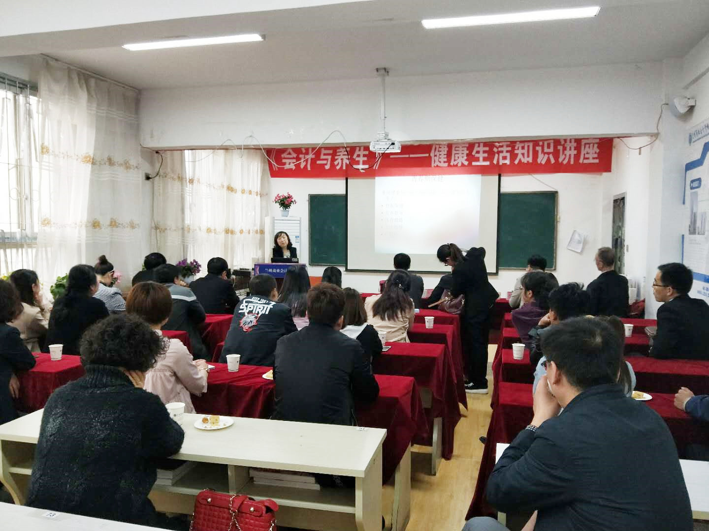 每年的春天既是疾病高发的季节,也是养生的佳时,为丰富会计学员的保健养生知识,增强养生意识,倡导科学、文明、健康的生活方式。4月15日下午,兰州商业会计学校在双城门分校隆重举办了会计与养生专题讲座。