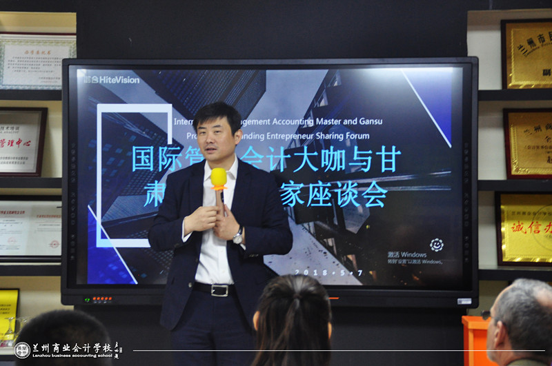兰州商业会计学校校长祁绪在座谈会上致辞,对远道而来的特邀嘉宾 Paul Juras一行人等及参会的甘肃优秀企业家表示热烈的欢迎和衷心的感谢。祁校长阐述了兰州商业会计学校在推动管理会计在甘肃省的落地与发展上所做的工作,他指出,要让管理会计助推甘肃企业的发展,同时也助力甘肃财会人员的升级转型,以推动甘肃经济的发展。(兰州商业会计学校祁校长在座谈会上致辞)