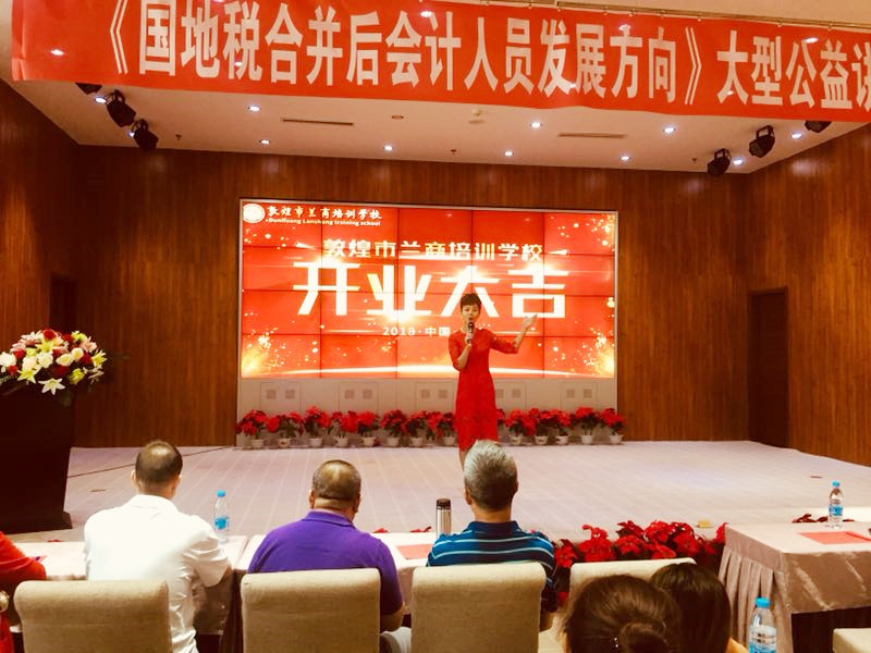 热烈祝贺敦煌市兰商培训学校正式成立暨《国地税合并后会计人员发展方向》公益讲座圆满成功举办