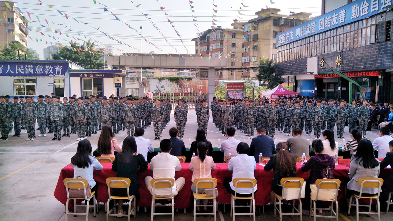 9月3日上午,兰州商业会计学校2018级新生军训汇报表演暨开学典礼在五泉校区隆重举行,学校校长祁绪、副校长赵雪琴、学工部主任何俊杰、教务部主任甘蓉、综合办主任李琪、双城门、西站、安宁、东部、雁滩教学部主任、驻训部队领导及部分班主任出席了此次典礼,军训教官带领我校2018级全体新生参加了典礼,典礼由校团委书记杜军锋老师主持。