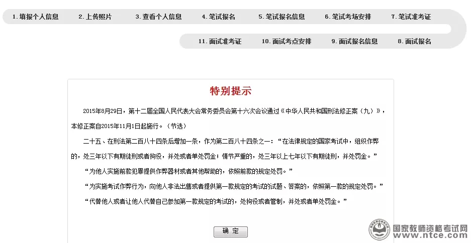 ④进入报名系统首页,可以看到关于考试纪律的提醒(如图4)图4