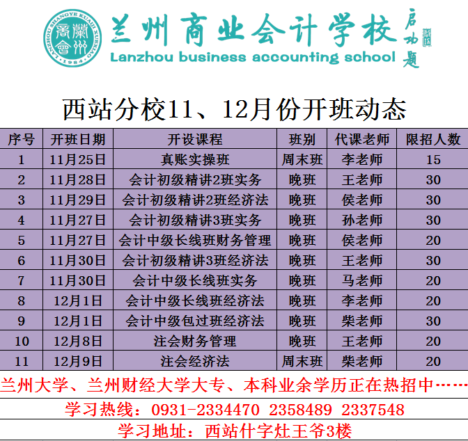 兰商西站分校11、12月份开班动态