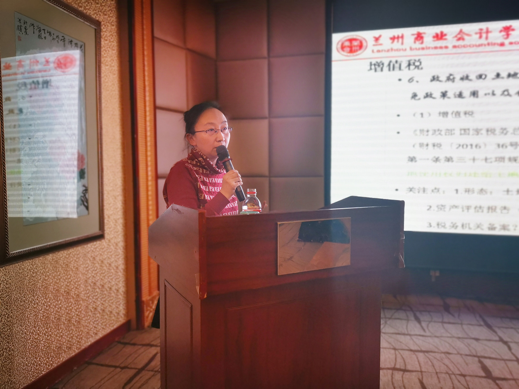 2018年12月13日,兰州商业会计学校《会计年末那些事儿》大型财务讲座在阳光大酒店隆重举办,此次讲座,兰商特邀注册会计师、税务师、资产评估师、经济师王莉老师为现场近两百多名企事业单位财务管理及会计人员讲解企业汇算清缴、个税新政等会计年末那些事儿。讲座现场座无虚席,不断地加座人气爆棚。