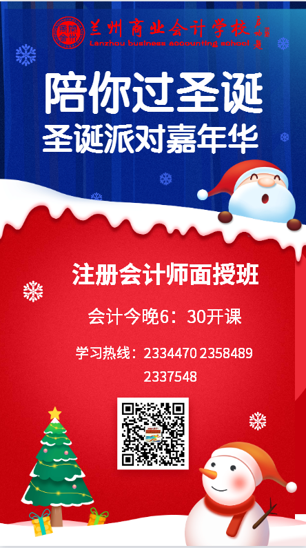 兰商西站分校陪你过圣诞圣诞派对嘉年华注册会计师面授班《会计》课程于今晚6:30开课,金牌老师赵正合老师授课,欢迎学习学习热线:2334470 2358489 2337548学习地址:西站十字灶王爷3楼