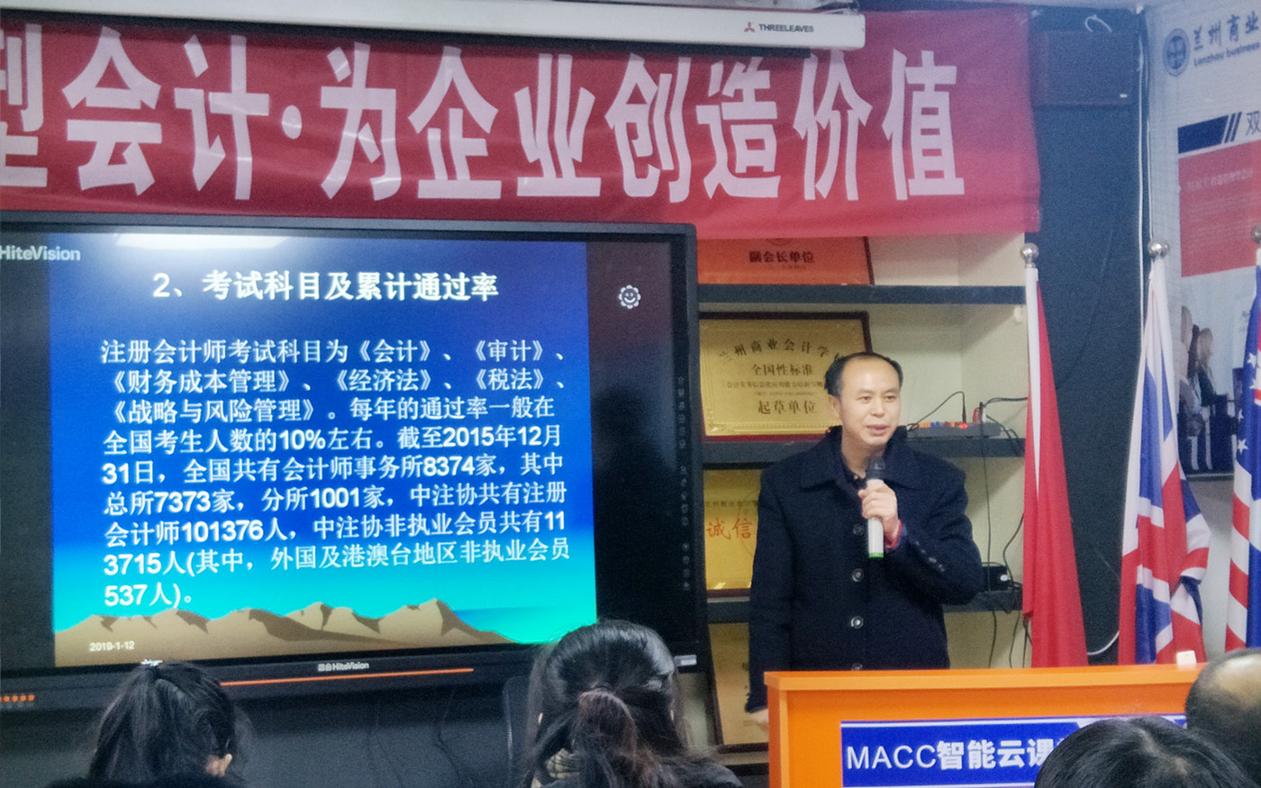 兰商注册会计师金牌教授王老师指出注册会计师是国内最顶尖的证书,在会计行业里具有不可撼动的地位。王老师简述了注册会计师考试各科目之间的关系,根据各科目之间的联系为注会考生提出了科学合理的科目搭配和备考建议。他指出,学习是发现问题“是什么?”、分析“为什么?”、解决问题“怎么做?”的过程,备考注会要抓主要矛盾,把学习的重点在放在“为什么”上,只有在深刻地理解的基础上,力争把所有问题和公式搞懂,才能学好。他指出,能否通过注册会计师不是专业的比拼,而是毅力的比拼,备考注会要信任自己、信任老师、信任学校,在学习的过程中,一定要坚持。