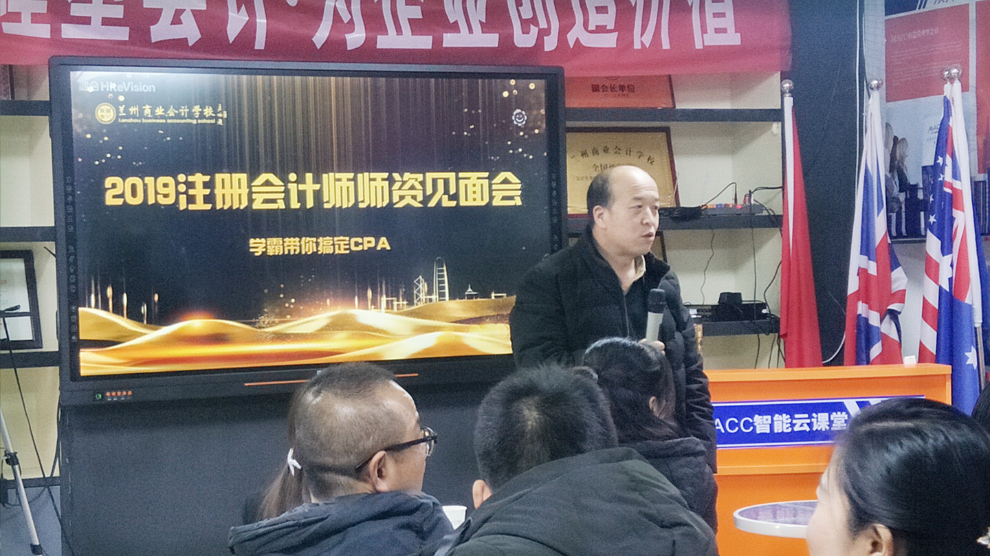 1月12日,兰州商业会计学校举办的《注册会计师师资见面会——学霸带你过注会》在华美大厦3楼兰商双城门教学点隆重举行,兰州商业会计学校书记王今强、兰商注册会计师金牌教授包俊权老师、王傲雷老师出席了本次见面会,现场兰商CPA金牌教授为学员带来了一场别开生面的注册会计师导学备考盛宴。