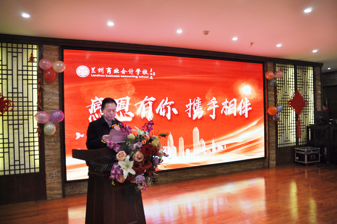 兰州商业会计学校党支部书记王今强在答谢会上致辞,对到场的领导、嘉宾、老师和学员代表表示衷心的感谢,并送上了新春的祝福。