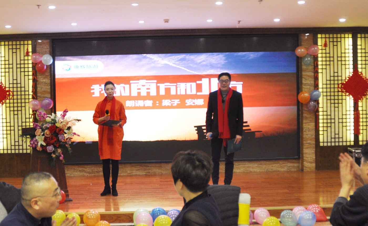 答谢会现场精彩的节目表演和游戏互动不断将活动推向高潮,会议过程中充满了欢声笑语,精彩绝伦、欢乐无比的气象,充分展现了新一年的兰商人及全场嘉宾的精神和风采。(二胡演奏《葡萄熟了》《赛马》) (嘉宾节目——康辉旅行社诗朗诵)