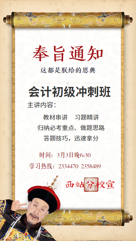 实战是检验学习效果的最好方式!归纳每年必考重点,做题思路,考试时间分配,答题技巧,迅速拿分,都在3月3日会计初级冲刺班!