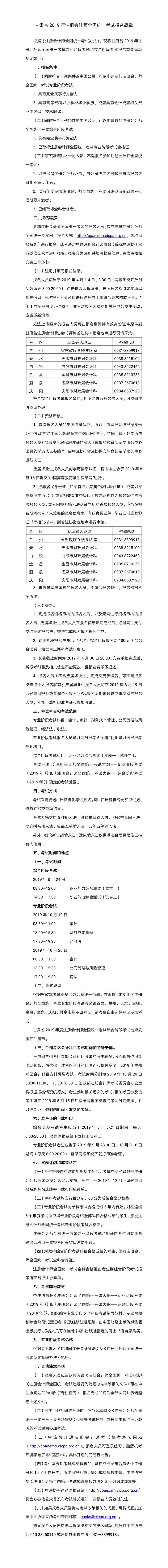 甘肃省2019年注册会计师全国统一考试报名简章