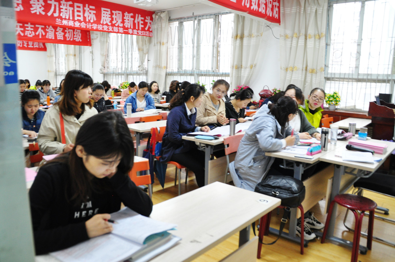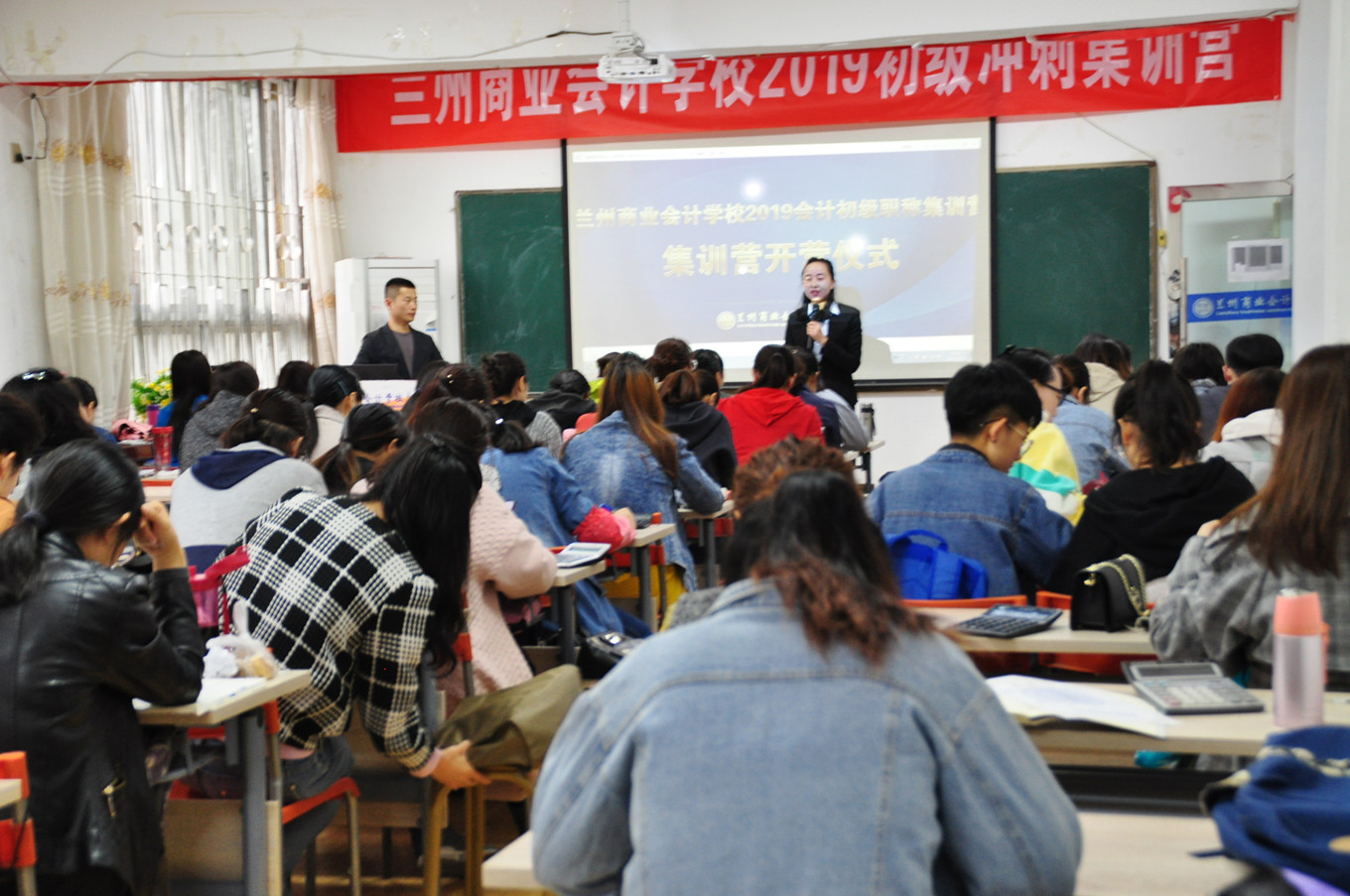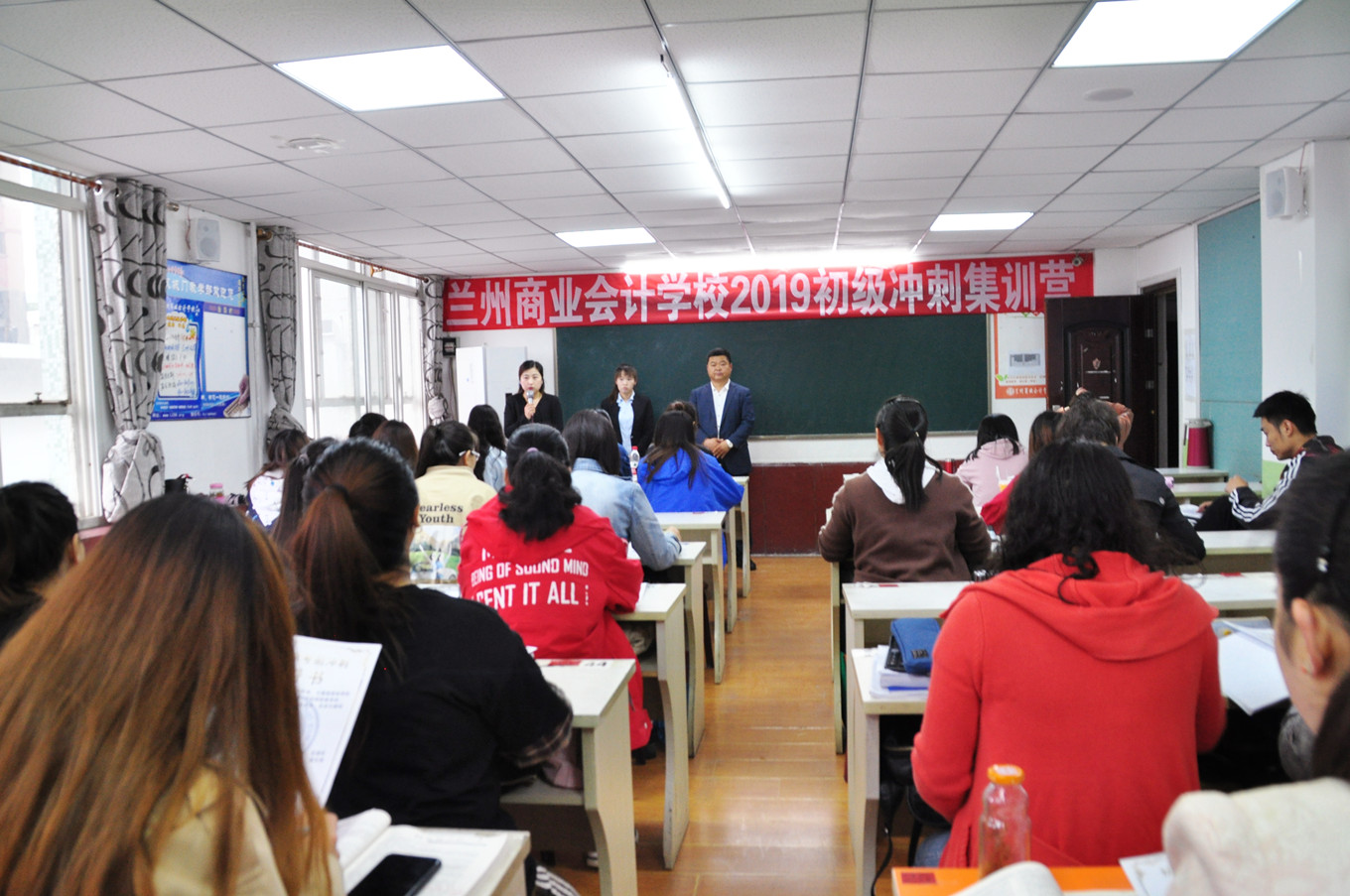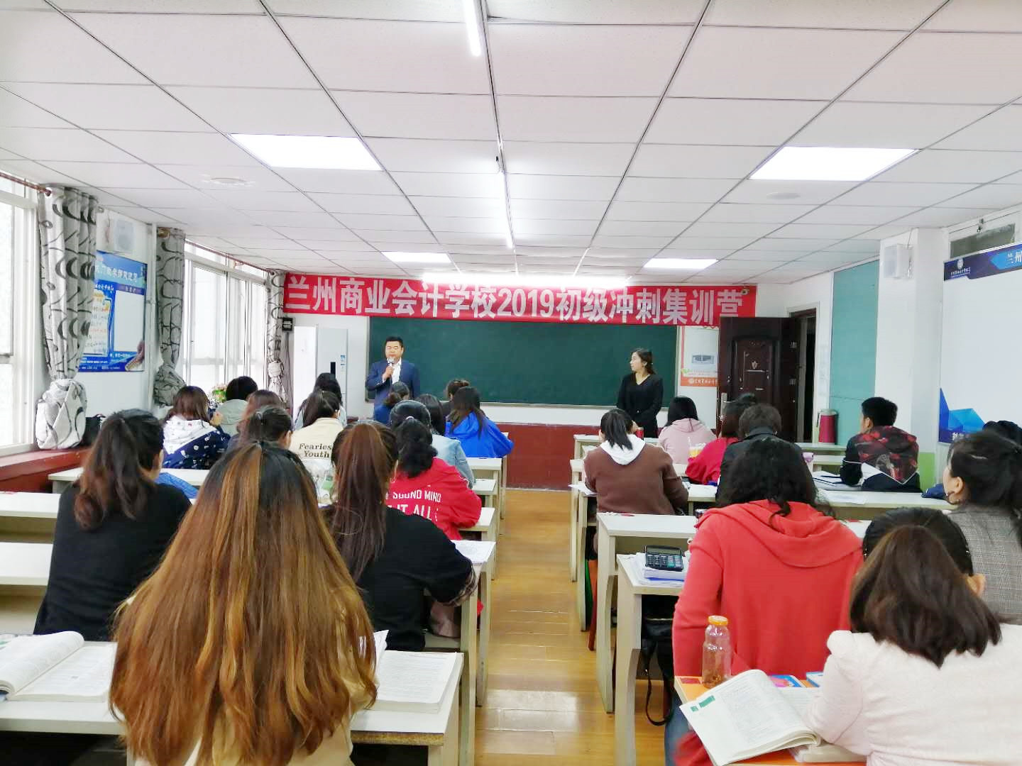 (兰商初级冲刺集训营-老师认真讲课) (兰商初级冲刺集训营-学员专心备战)
