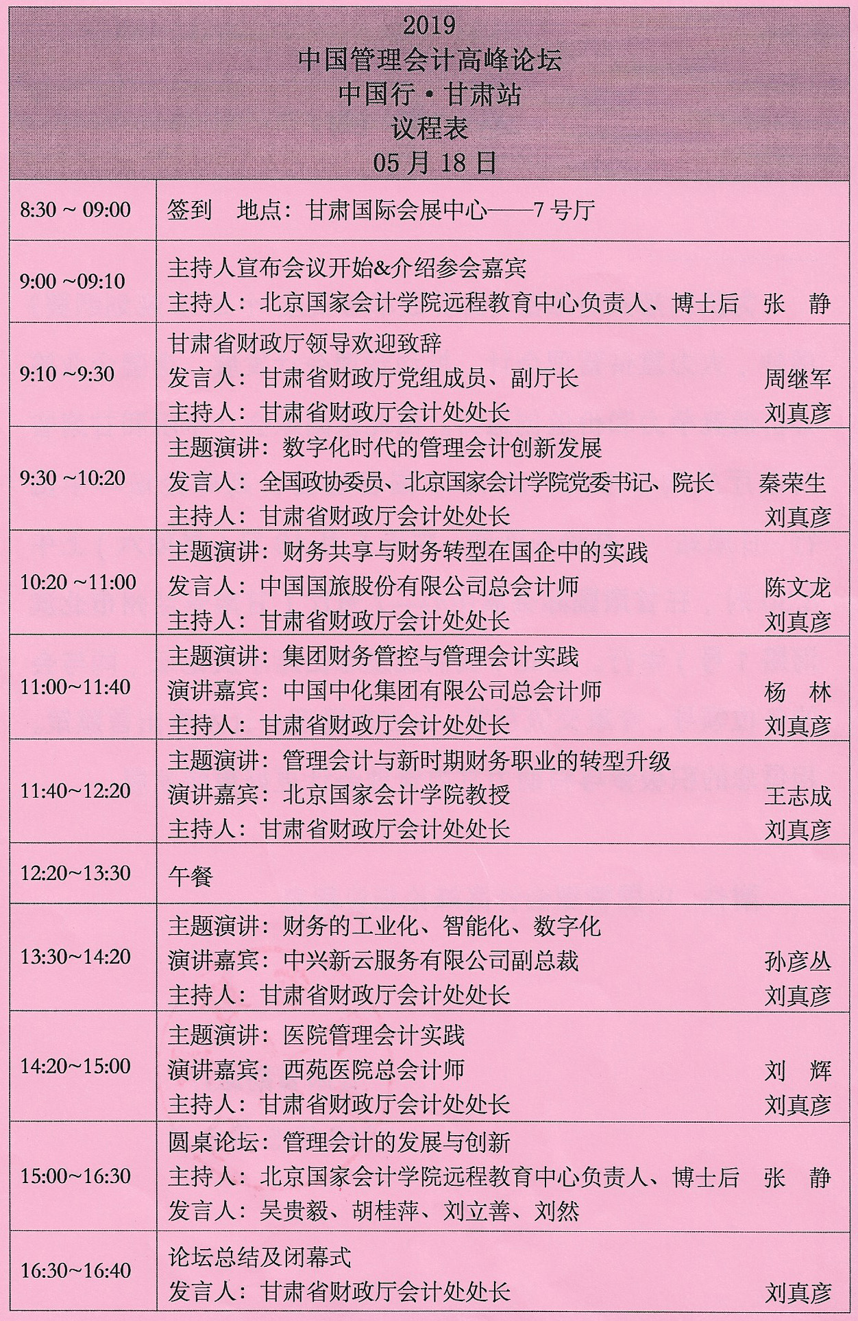 2019年5月18日,北京国家会计学院携手甘肃省财政厅联合举办“2019年中国管理会计高峰论坛-管理会计中国行·甘肃站”公益论坛活动。本次论坛活动特别邀请政府有关部门领导、管理会计领域知名专家学者、企业领导者、总会计师等重要嘉宾,聚焦管理会计的理论与实践创新,全方位深入解读新时代的管理会计最新发展趋势与应用实践,为积极探索我国管理会计未来发展搭建了专业的交流平台。