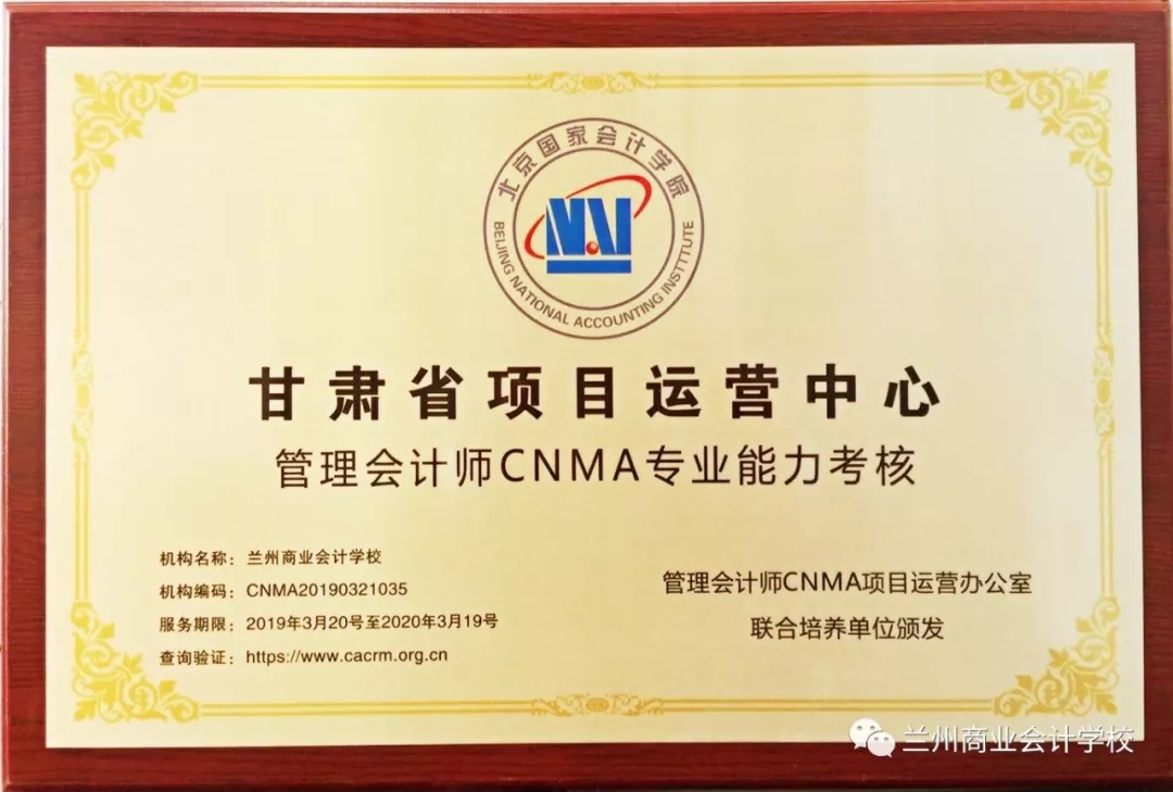 (热烈祝贺兰州商业会计学校正式获得北京国家会计学院管理会计师CNMA项目的授权)