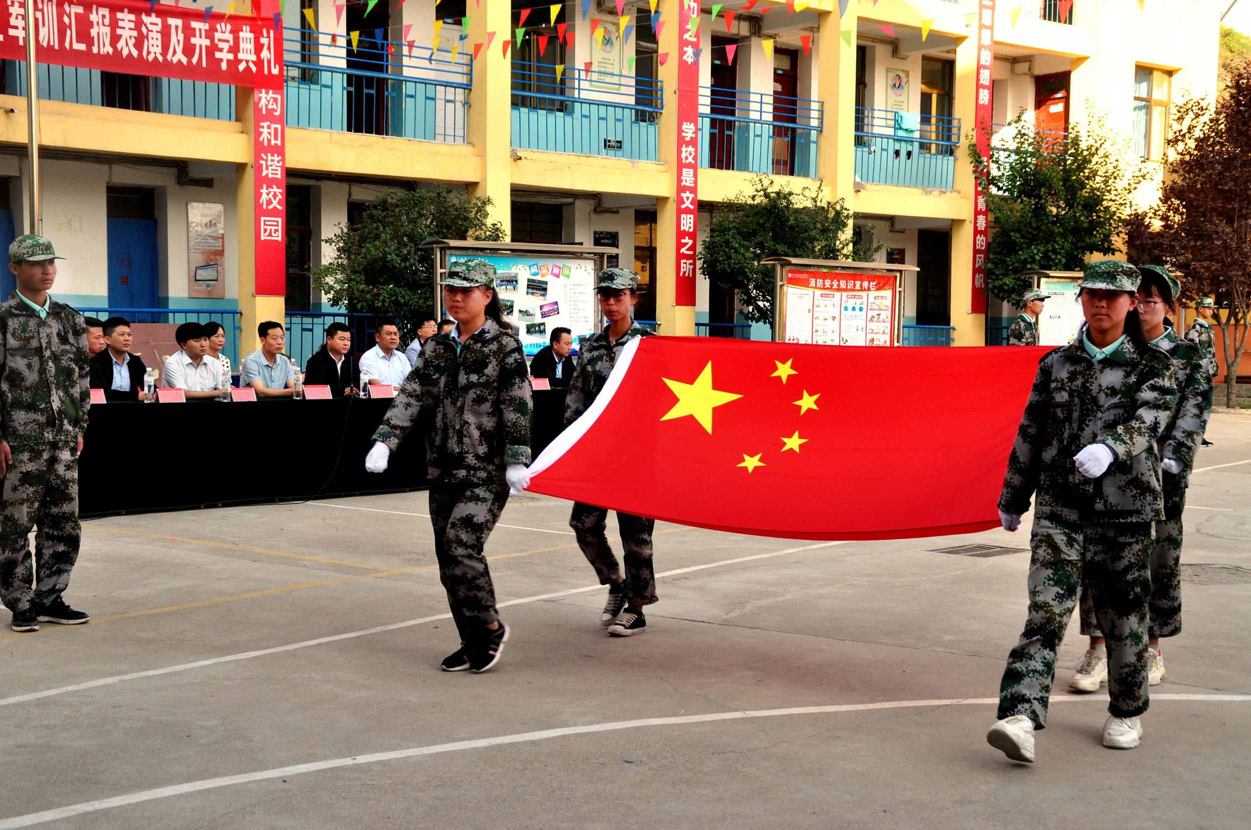 本次新生军训汇演暨开学典礼的举行,标志着新学年已经开始,预示着全校师生站在新的起点,同学们不仅强化了纪律意识,磨练了意志品质,体会到团队合作的重要性,更是增进了对学校的认同感。我们相信,在全体师生的不懈努力下,一定会赢得更加灿烂辉煌的明天。