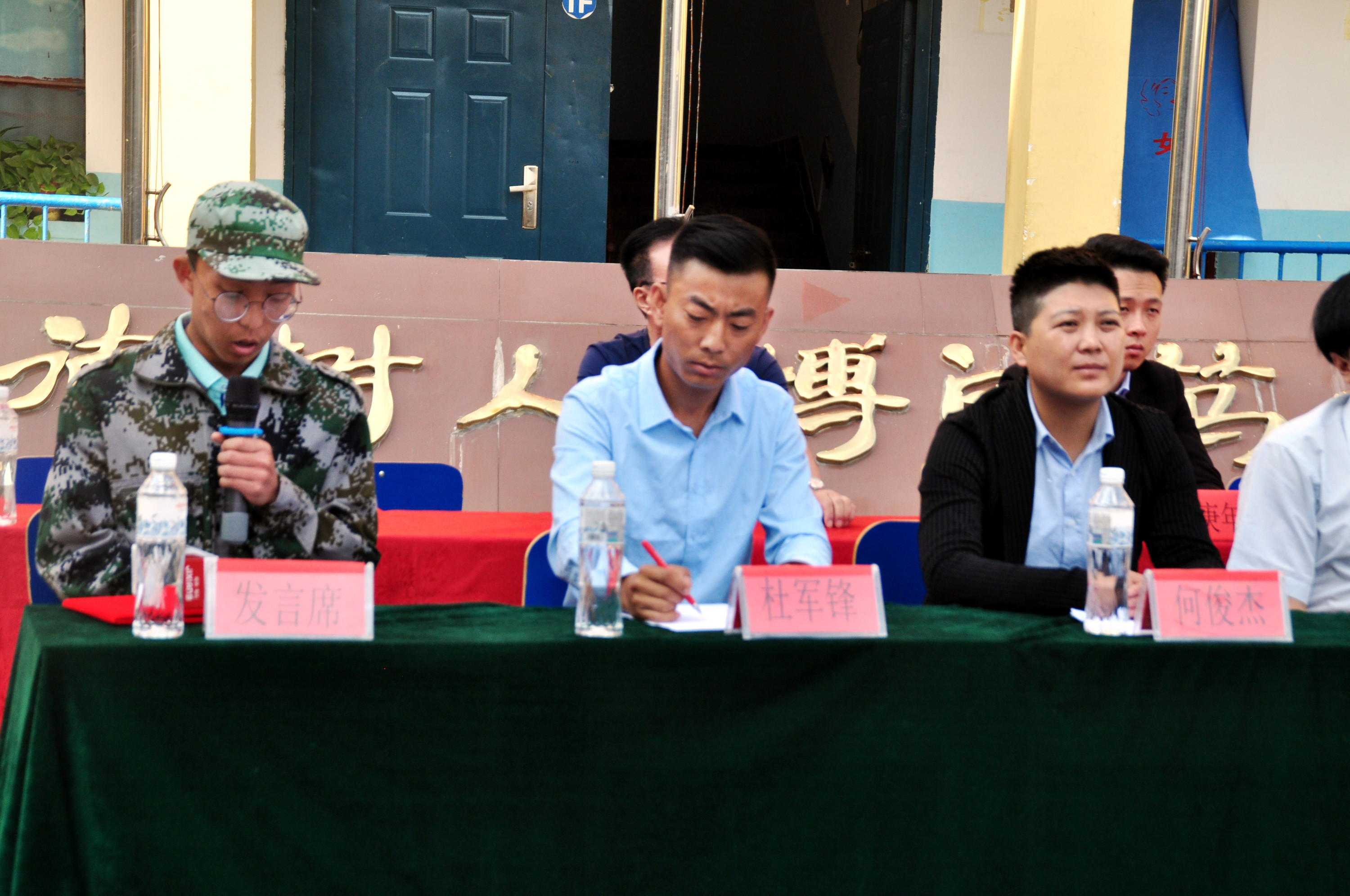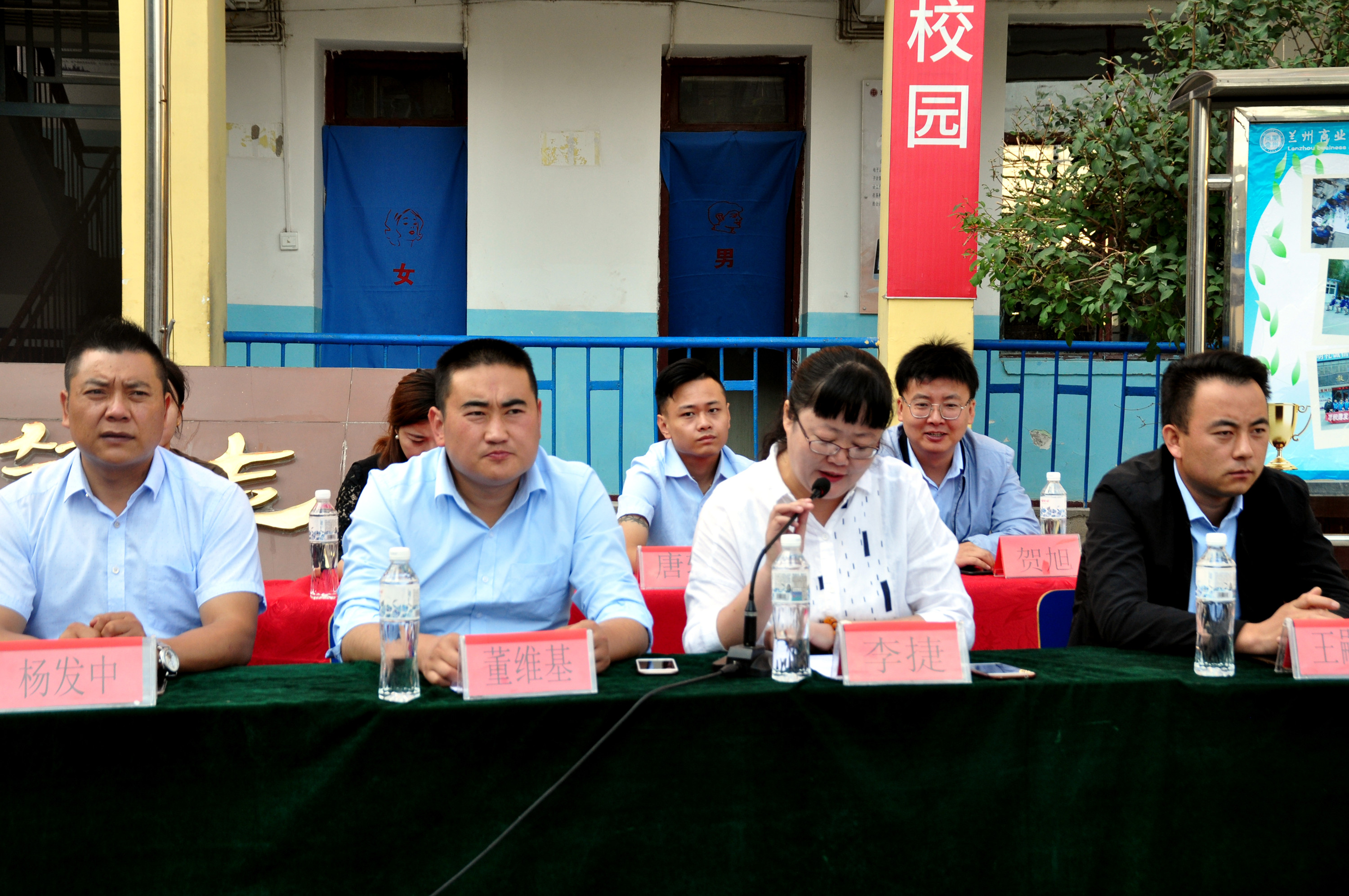 (教务科李老师在开学典礼上发言)