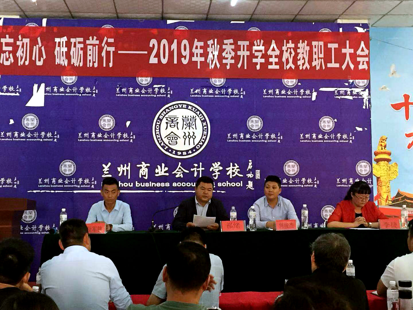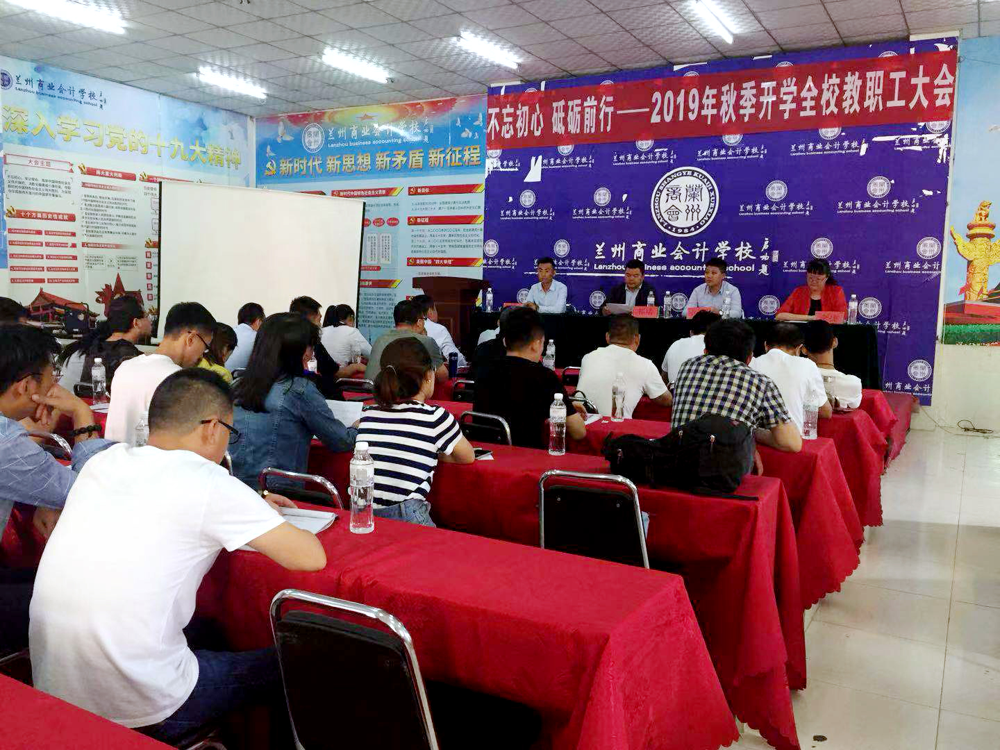 2019年9月3日,兰州商业会计学校在五泉校区隆重召开2019年秋季学期教职工大会,兰州商业会计学校校长祁绪、书记王今强、校区主任何俊杰、教务科科长李捷、校区任课老师及校区教职员工出席了此次会议。会议由兰州商业会计学校校团委书记杜军锋主持。
