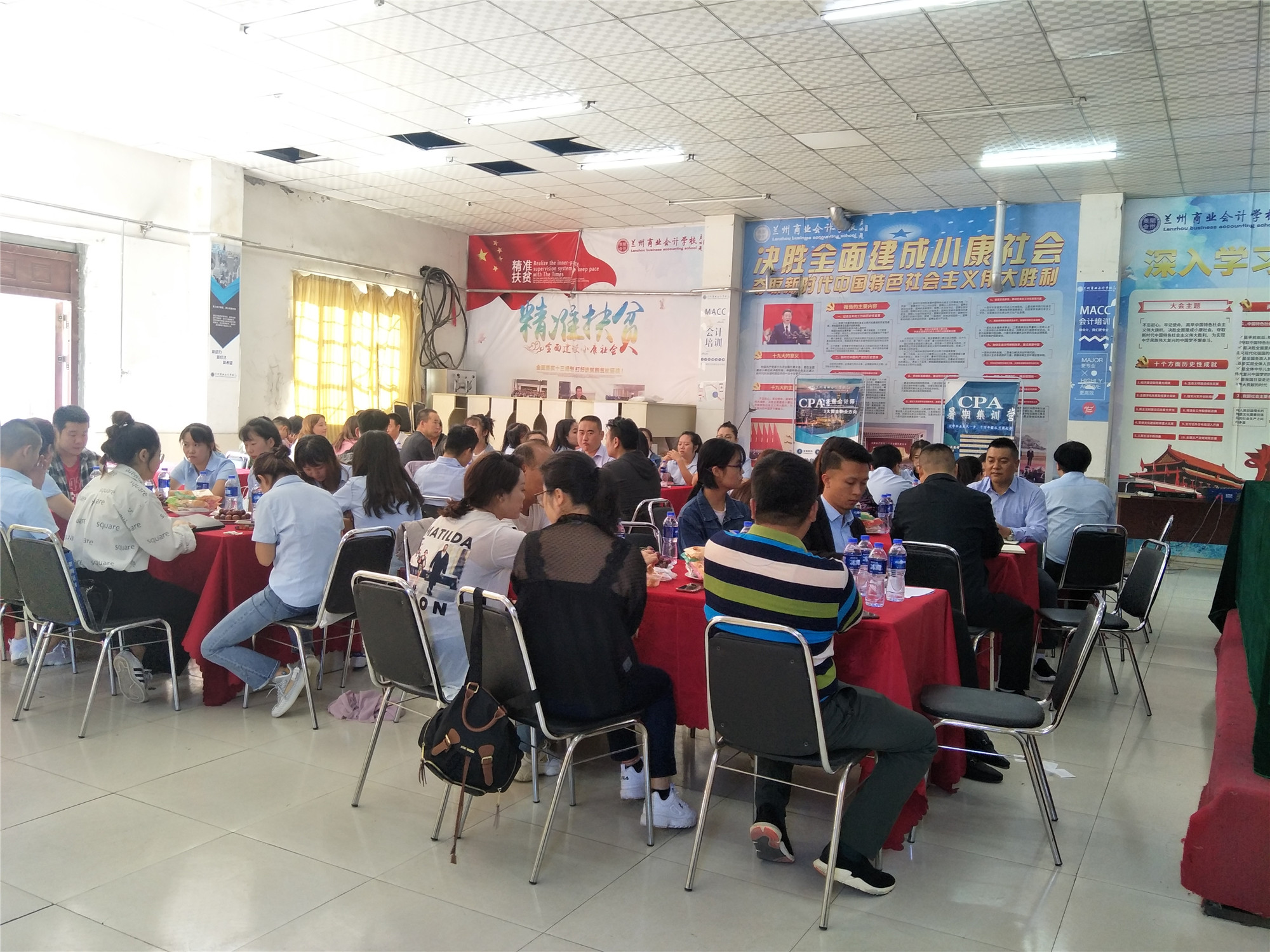 会议上,精准扶贫培训中心杨校长、会计板块王校长、赵校长、甘肃兰商财税服务有限公司杨会计、兰商人力资源有限公司王经理、五泉学历校区何主任分别汇报了各板块任务完成情况及下半年任务目标及工作计划。同时给在场教职员工送上了节日的祝福和问候。