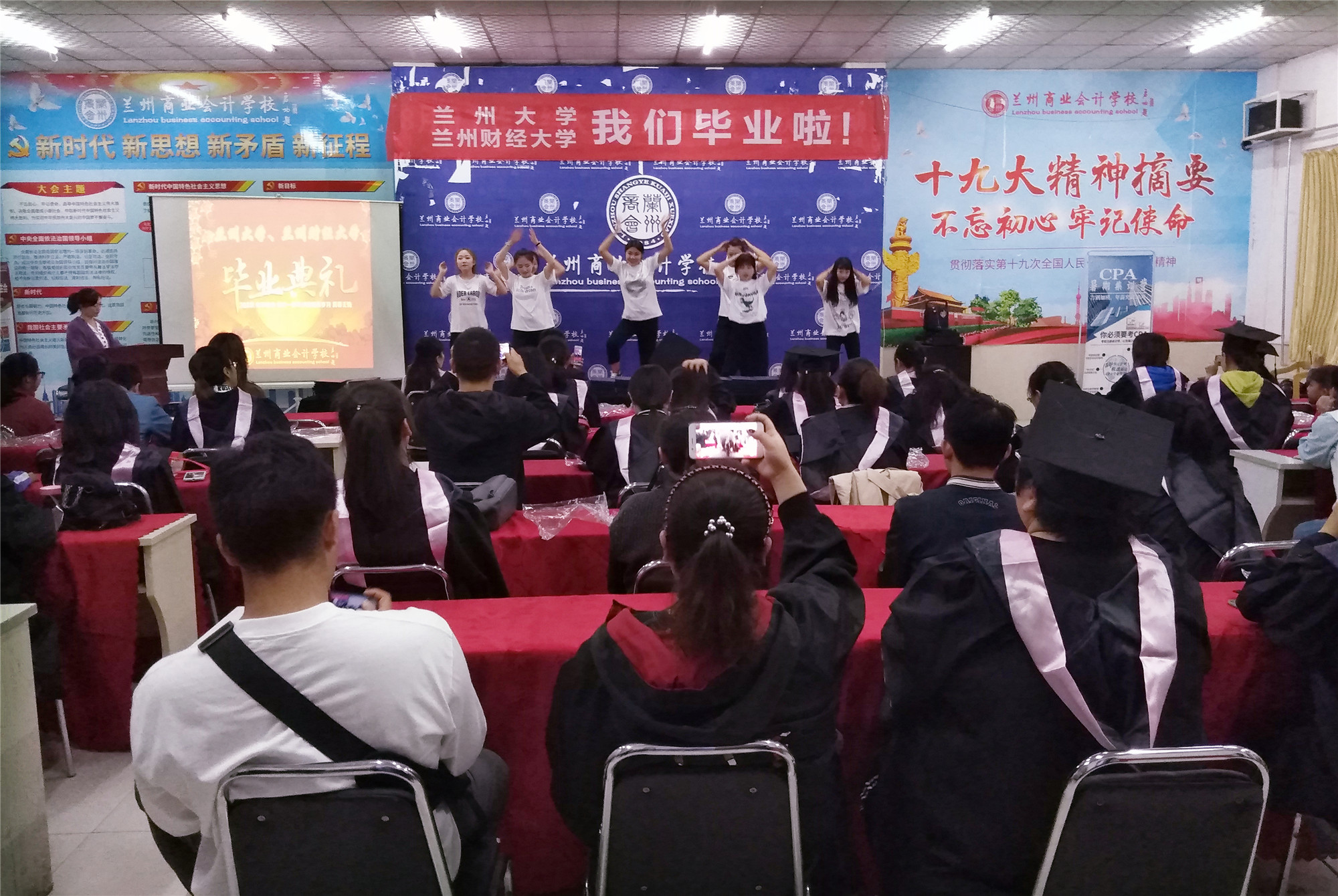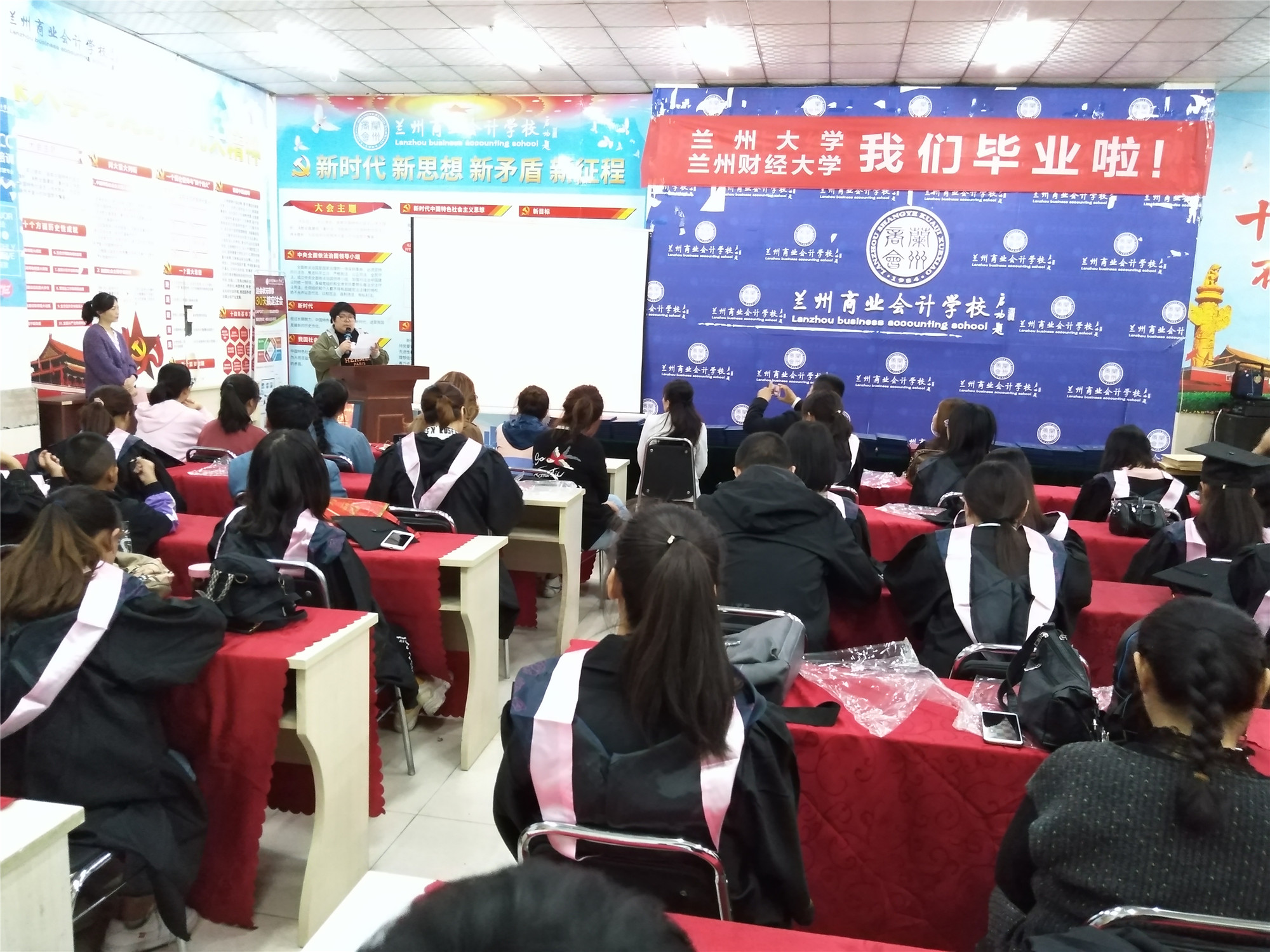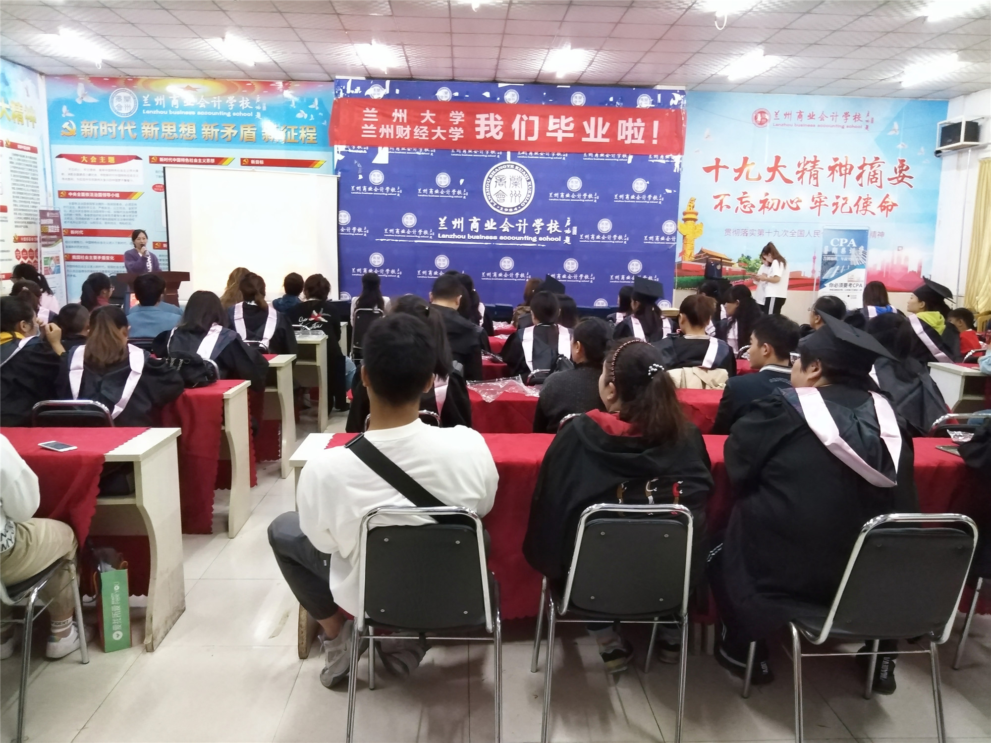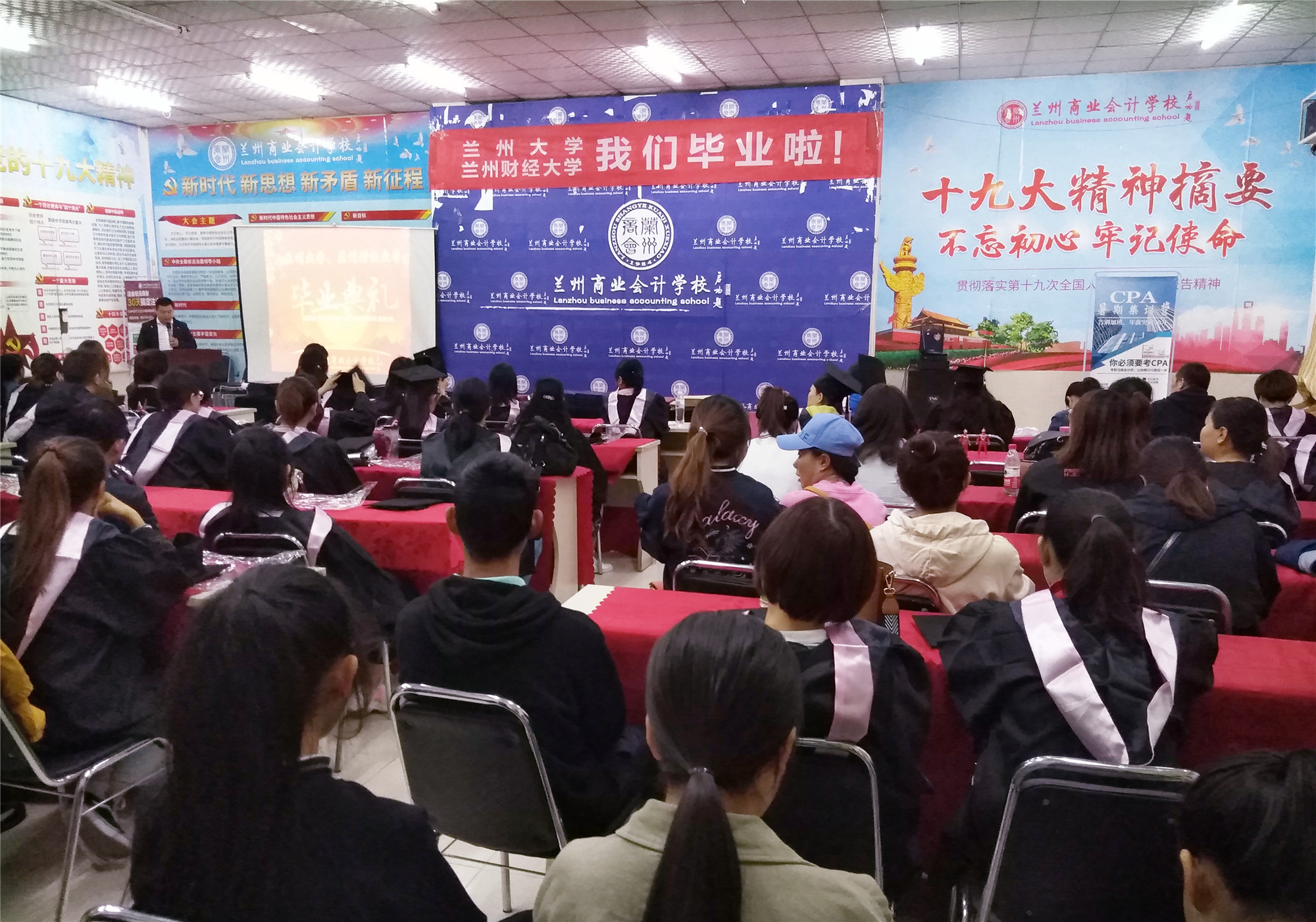 2019年9月23日,兰州大学网络教育学院、兰州财经大学自学考试大专本科学生毕业典礼在兰州商业会计学校五泉校区多功能厅隆重举行,兰州商业会计学校校长祁绪、副校长赵雪琴、办公室主任李琪、学历中心负责人刘小红等领导及获得兰大网络教育学院与兰州财经大学自学考试专本科学历的159名学员共同见证了这一难忘的时刻!