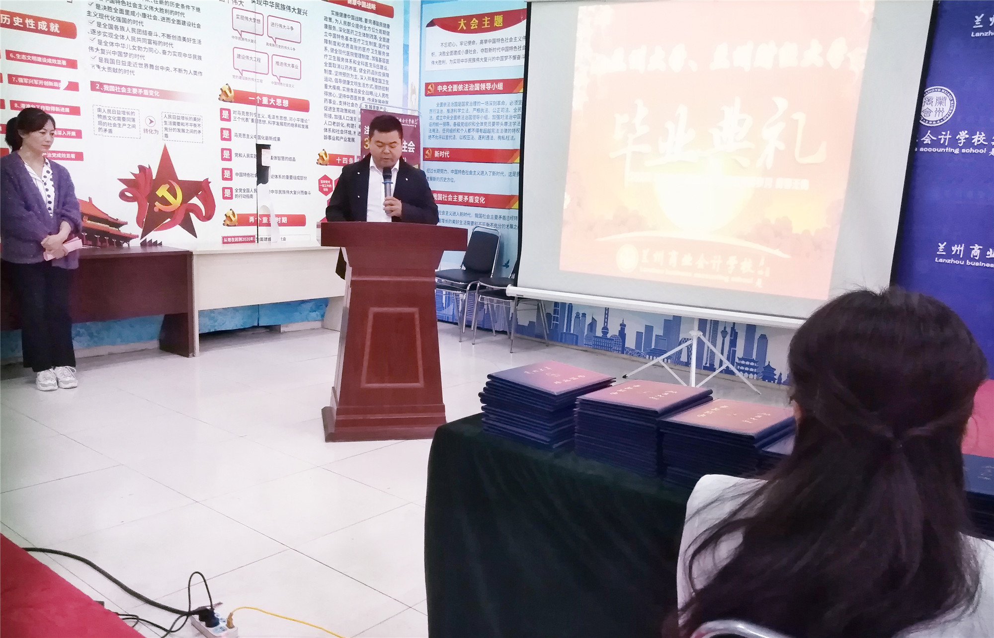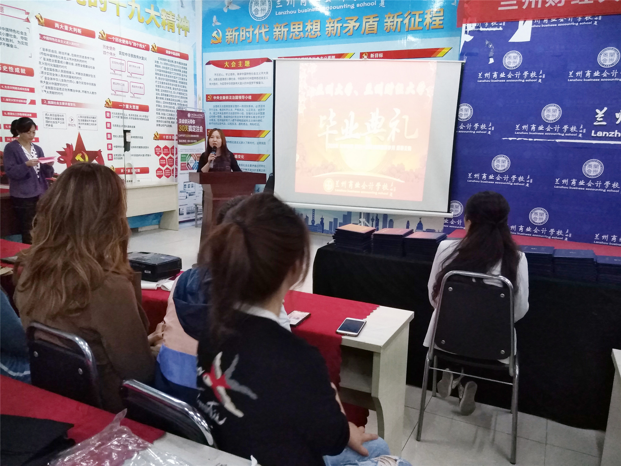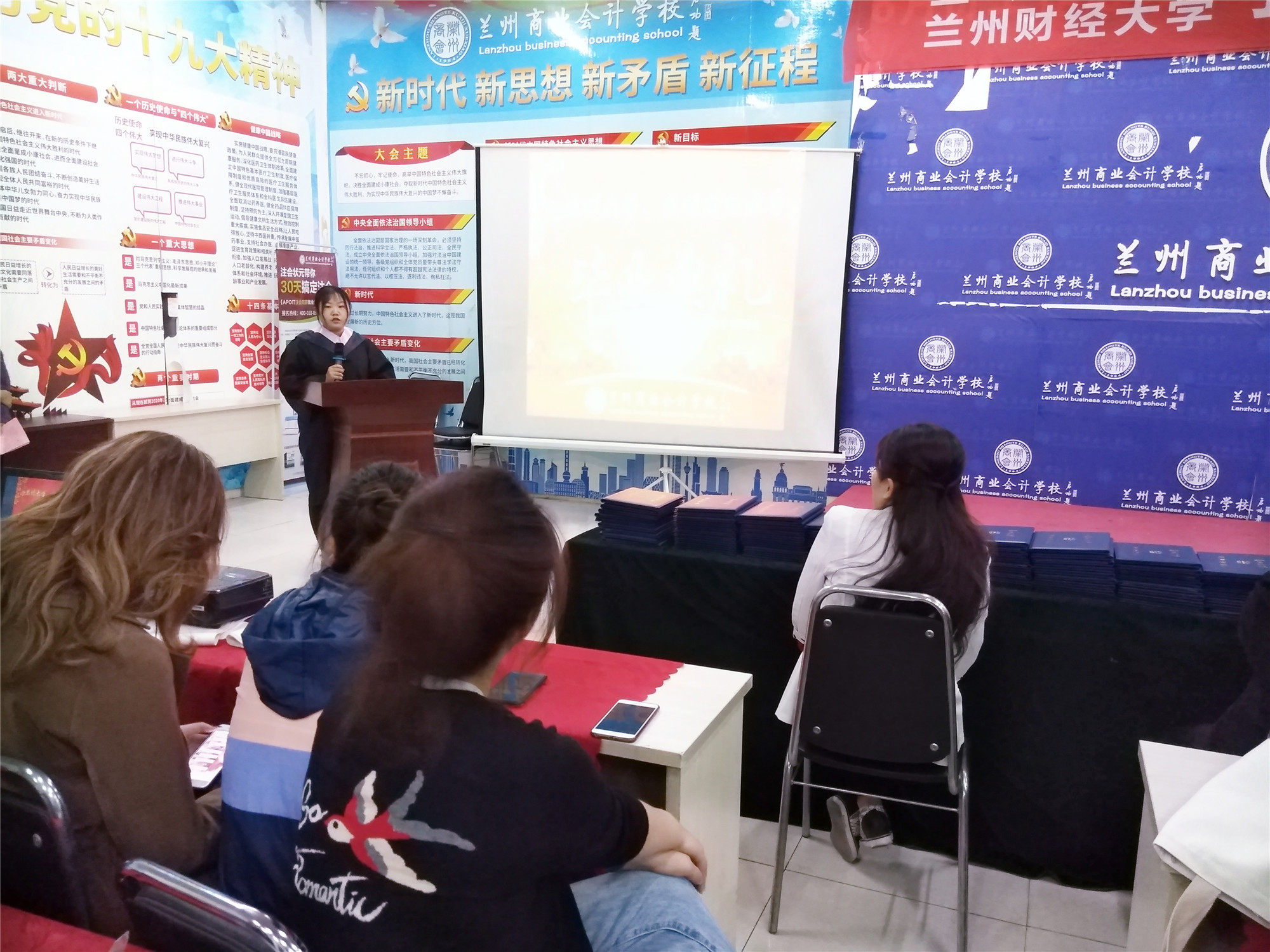 兰商优秀毕业生代表从自己的工作实际出发,强调了对财会人而言,学历与职称的重要性以及坚持学习、不断提升的重要性。同时对兰商老师的辛勤培养以及兰州商业会计学校为学员们的学习和成长提供的良好平台表示感谢。