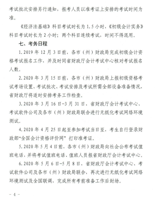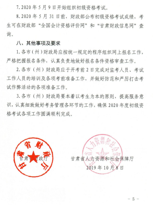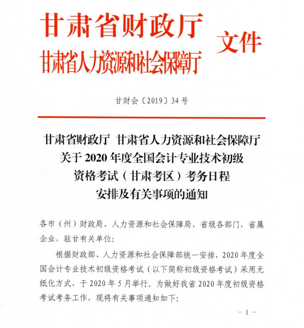 关于2020年度全国会计专业技术初级资格考试(甘肃考区)考务日程安排及有关事项的通知