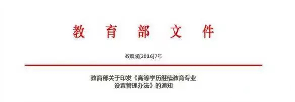 2016年,教育部制定印发了《高等学历继续教育专业设置管理办法》;