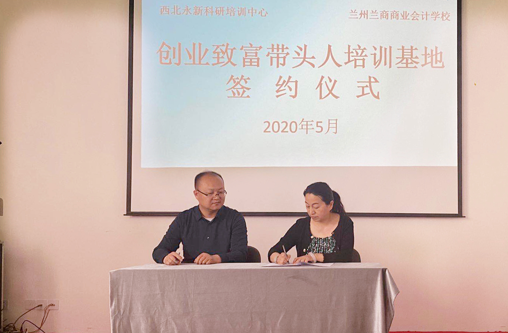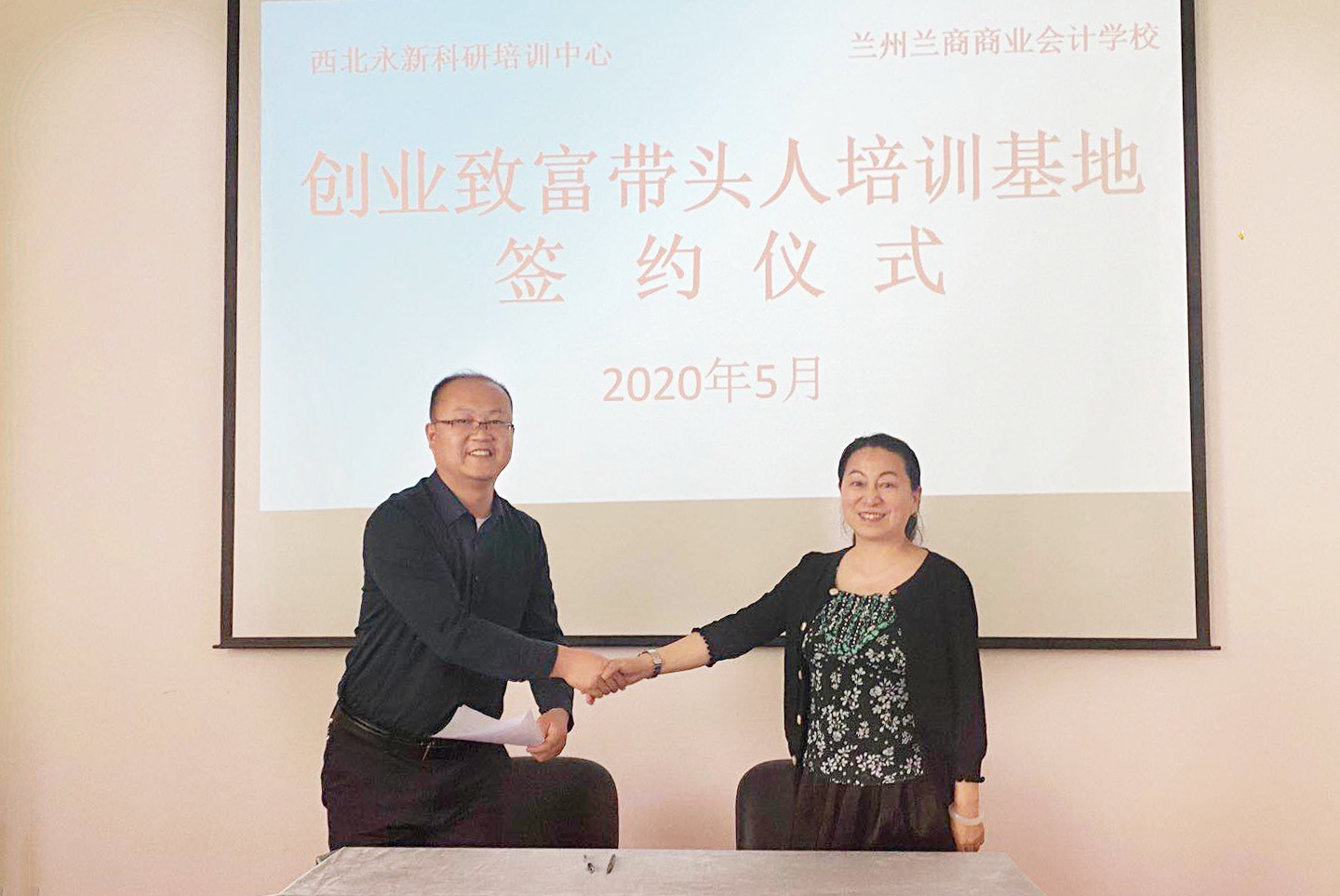 4月30日下午,兰州兰商商业会计学校与西北永新科研培训中心签订“创业致富带头人培训基地”合作协议,这一合作体现出双方积极贯彻落实国家决胜脱贫攻坚的政策,通过加强校企合作,共同助力精准扶贫培训,助力打赢脱贫攻坚战。