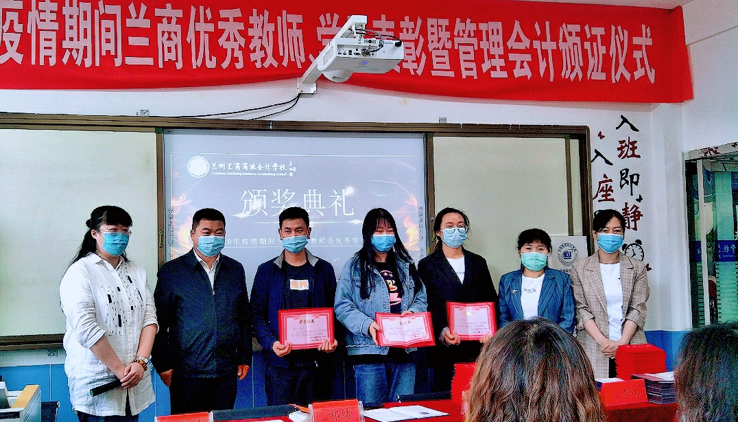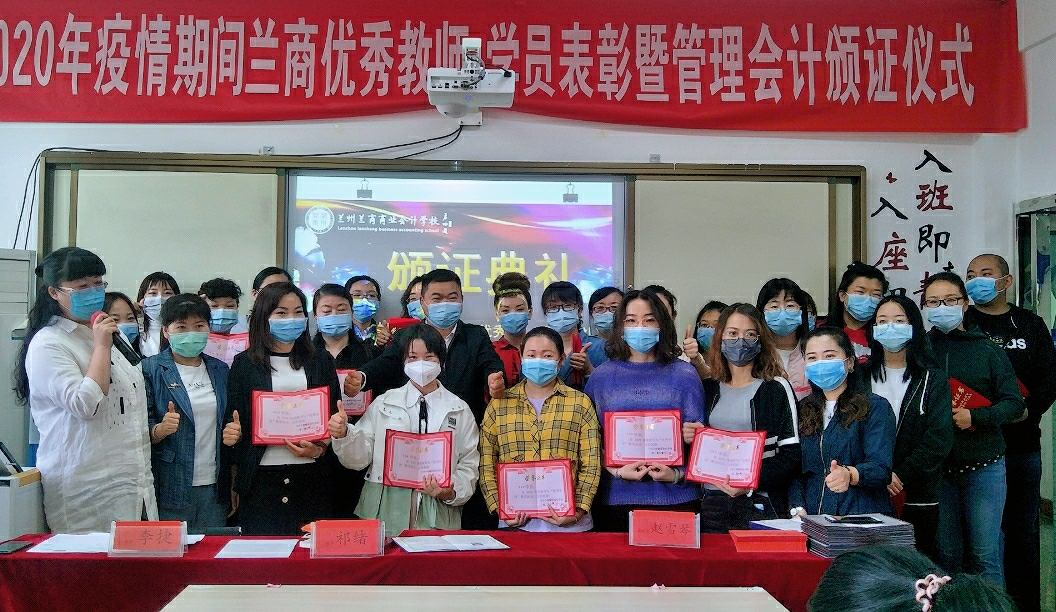 兰商教育集团董事长、兰州商业会计学校校长祁绪分别为2020年疫情期间表现优秀的老师、学员以及顺利取得管理会计师、会计信息化证书的学员颁发证书。优秀的他们,是榜样,是示范,兰商为他们鼓掌,同样也为他们骄傲。