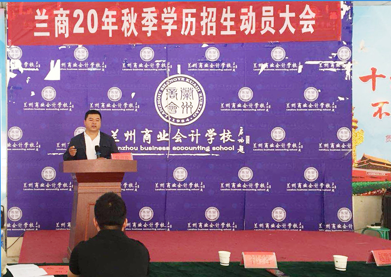 兰州商业会计学校五泉学历校区主任何俊杰在动员大会上对2020年秋季招生进行工作部署,何主任从2020年学校的招生政策、招生计划、专业设置等方面出发,阐述了学校2020年秋季招生的各项工作安排,明确了招生任务和目标,强调了招生要求和注意事项。