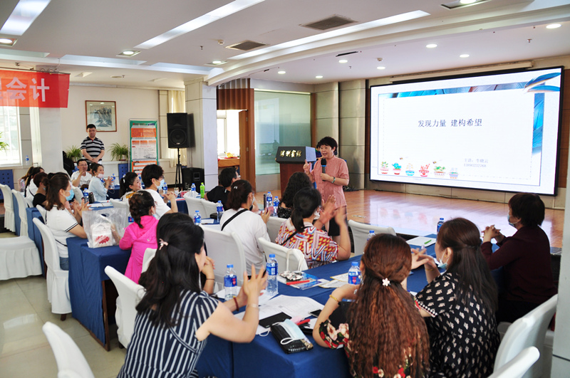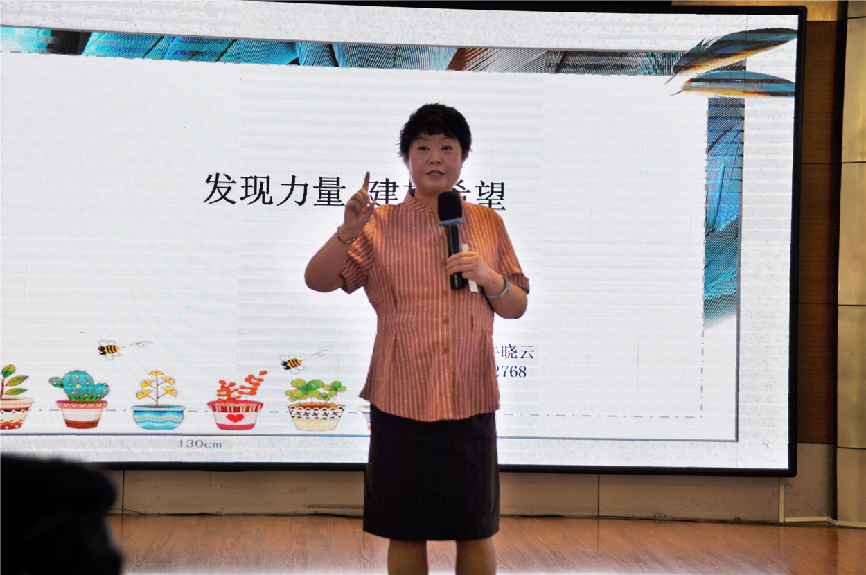企业高级培训师牛晓云老师以“发现力量,建构希望”为主题,结合有趣的互动游戏和充满正能量的案例,讲述了特殊时期学员如何建构希望,重塑良好的学习、生活习惯,激励在场人员发现自我价值,激发力量,以积极乐观的心态面对人生。
