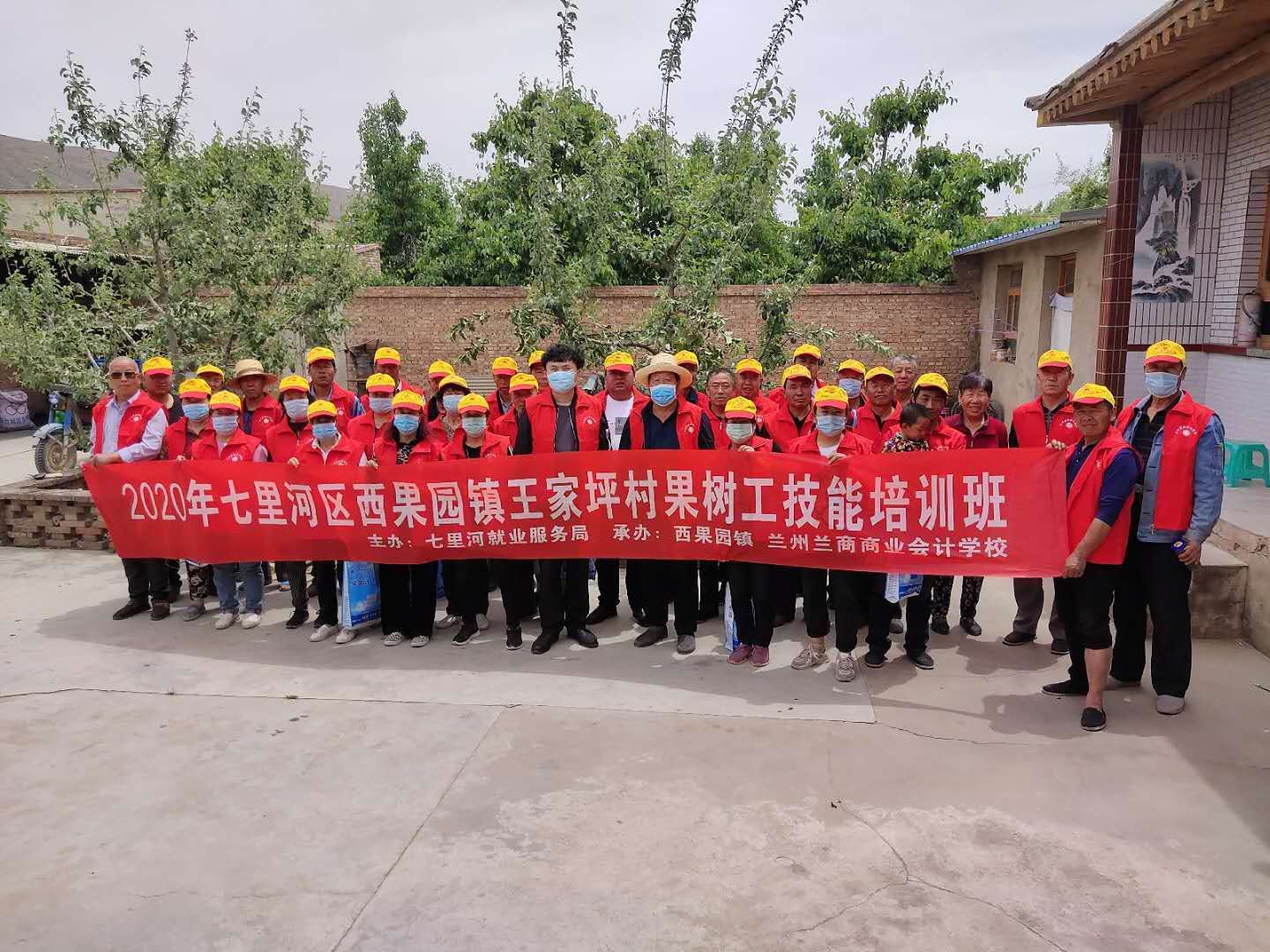 兰州兰商商业会计学校自2020年5月13日至2020年5月27日,组织在七里河区西果园镇王家坪村培训学员50人,为期15天120课时的劳务技能培训,培训专业果树工,培训结束组织理论和实操考试,通过考试合格后,颁发培训合格证书。