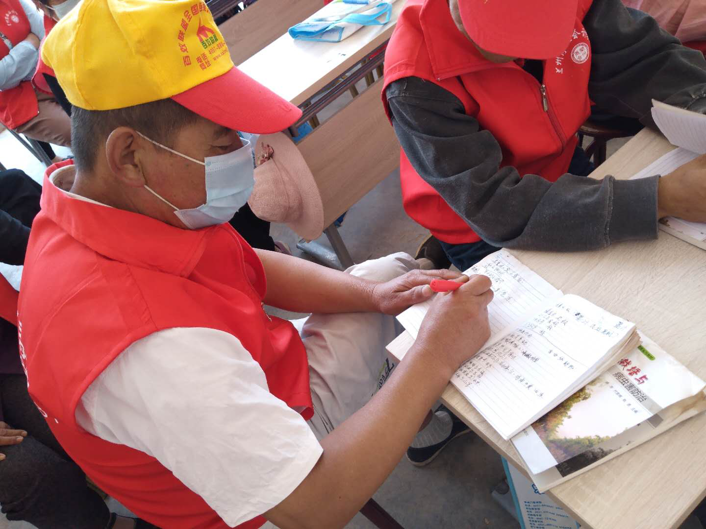 (王家坪村村民王世建认真记笔记的剪影)