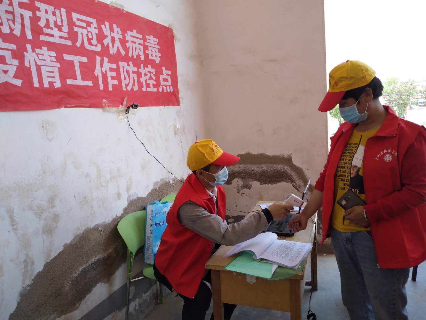 (学校工作人员上课前给村民测量体温)