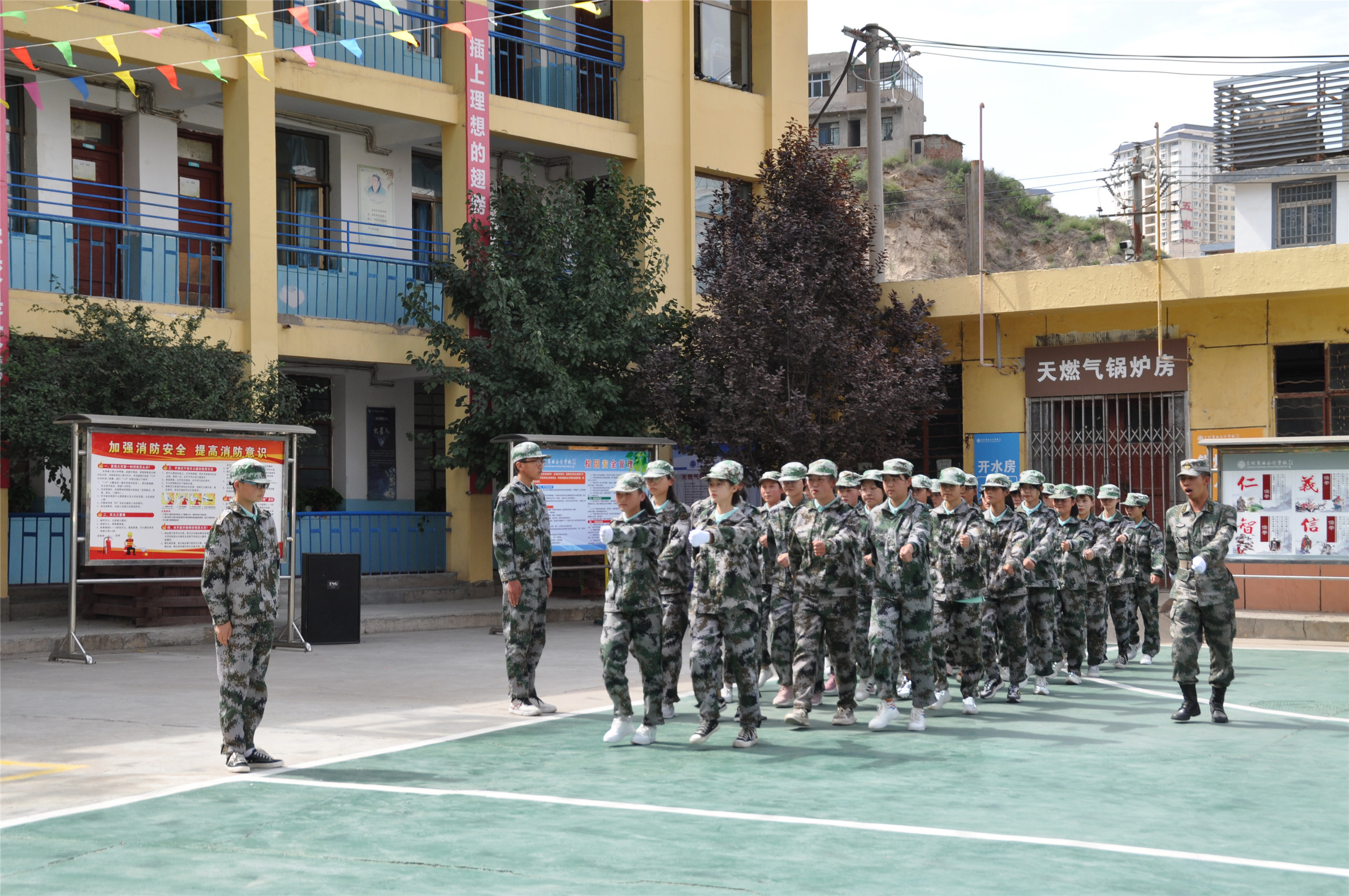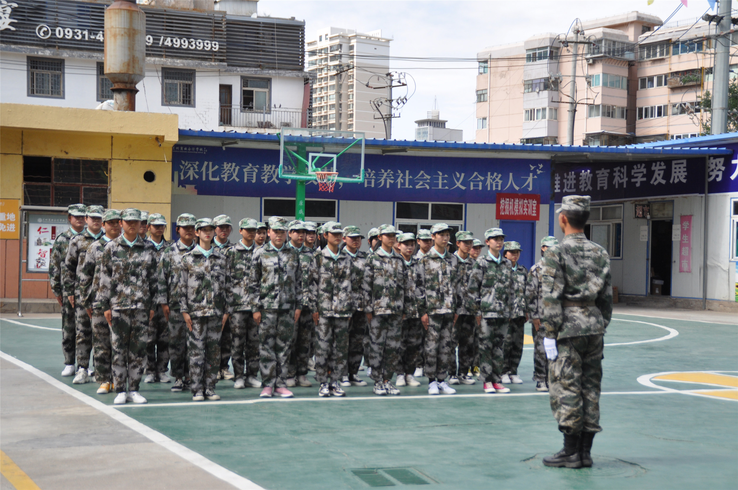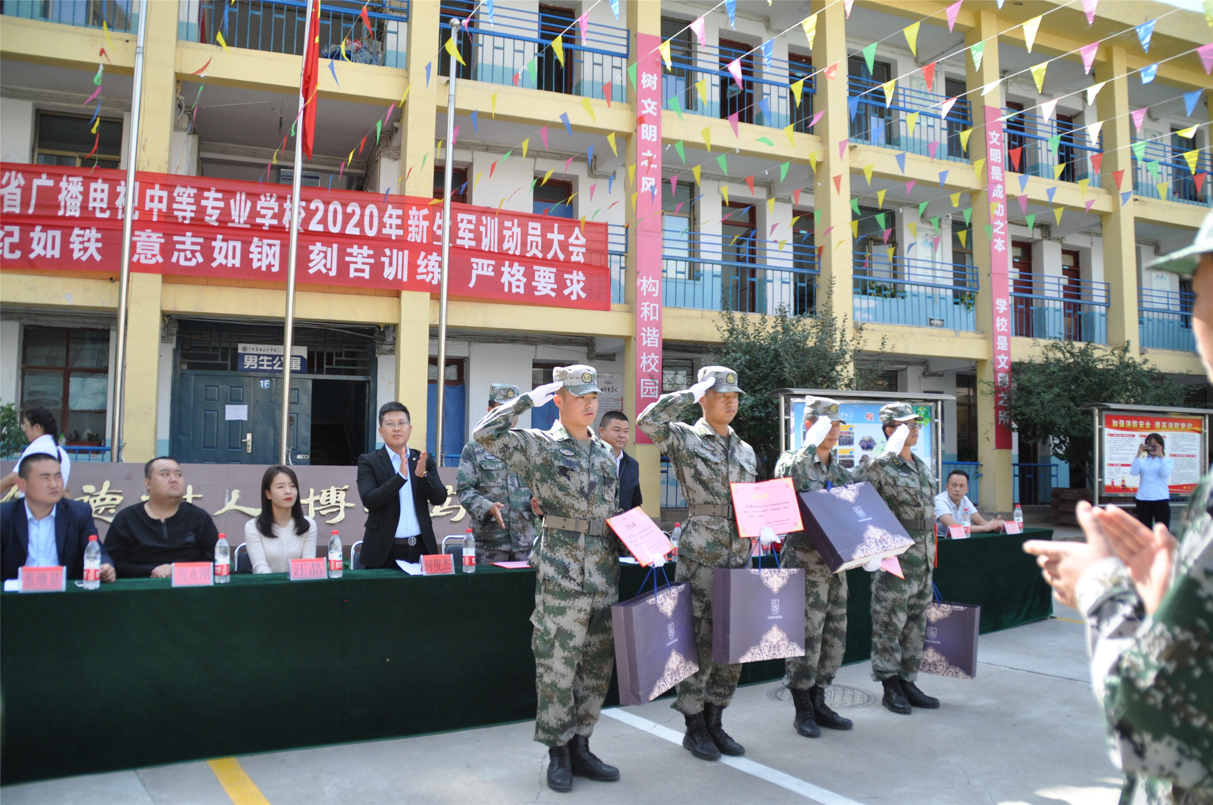 2020年9月6日,甘肃省广播电视中等专业学校(兰商校区)2020级新生军训汇报表演暨开学典礼在校园篮球场上隆重举行,兰商校区校长祁绪、承训单位领导蔡春东同志、副校长赵雪琴、综合办主任李琪、教务部主任李捷、校区主任何俊杰、学生科科长董维基、就业办主任周永刚等领导出席,各班班主任及学校全体在校学生参加了新生军训汇报表演暨开学典礼,典礼由校团委书记杜军锋老师主持。