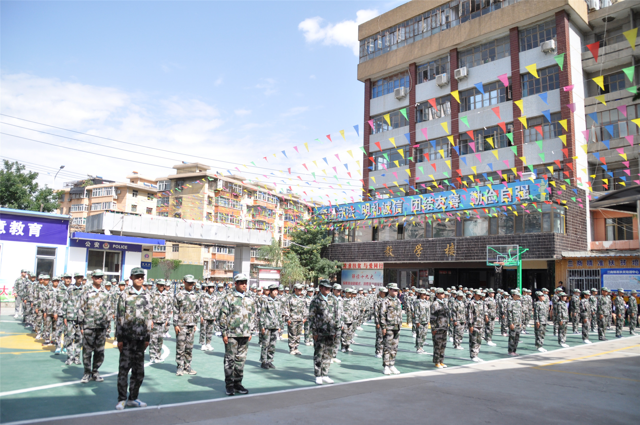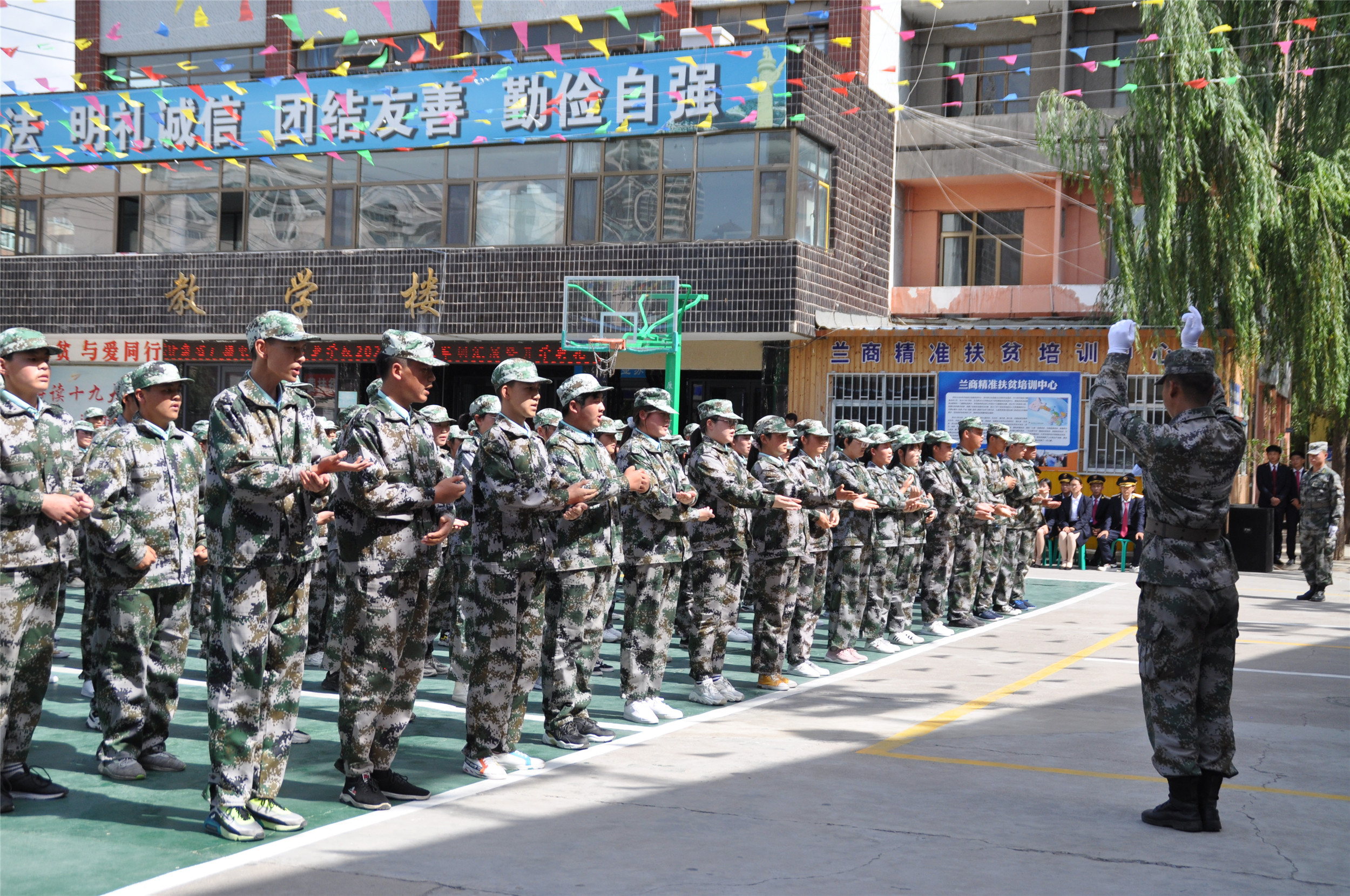 本次新生军训汇演暨开学典礼的举行,标志着新学年已经开始,新学期,新起点,我们坚信,在兰商全体师生的共同努力下,上下齐心,团结一致,励精图治,继往开来,以更饱满的激情投入到工作和学习中,共同绘制更闪亮、更美好的未来!