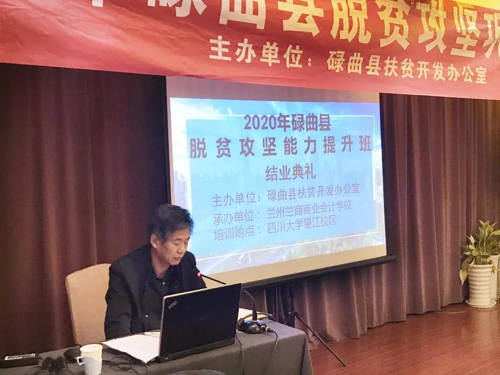 在结业典礼上,兰州兰商商业会计学校校长祁绪对本次培训作总结,祁校长肯定了学员在培训期间取得的成绩和收获,同时也希望学员们能够进一步巩固学习成果,学以致用、学用相长,全力助推碌曲县脱贫攻坚工作取得实效。