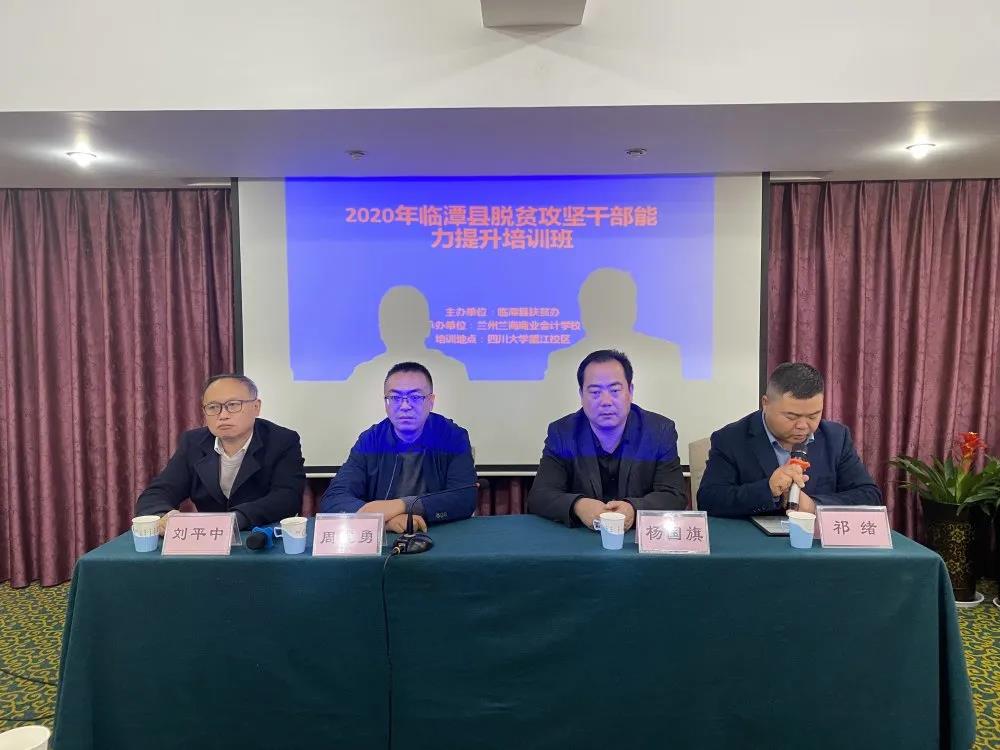 10月19日,由临潭县扶贫开发办公室主办,兰州兰商商业会计学校承办的“2020年临潭县脱贫攻坚干部能力提升培训班(成都)第二期”在成都四川大学望江校区科华苑正式开班。临潭县纪委监委第六派驻纪检组组长杨国旗、临潭县扶贫开发办公室副主任周志勇、四川省社会科学院研究员、博士刘平中教授、兰州兰商商业会计学校校长祁绪及临潭县五十多名干部参加了开班仪式,仪式由兰州兰商商业会计学校校长祁绪主持。