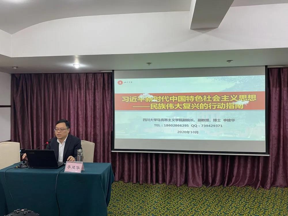 四川大学马克思主义学院李建华副院长以“习近平新时代中国特色社会主义思想——民族伟大复兴的行动指南”为主题进行授课,引领学员学习政策,牢记职责使命,自觉把思想、行动统一到党中央的决策部署上。