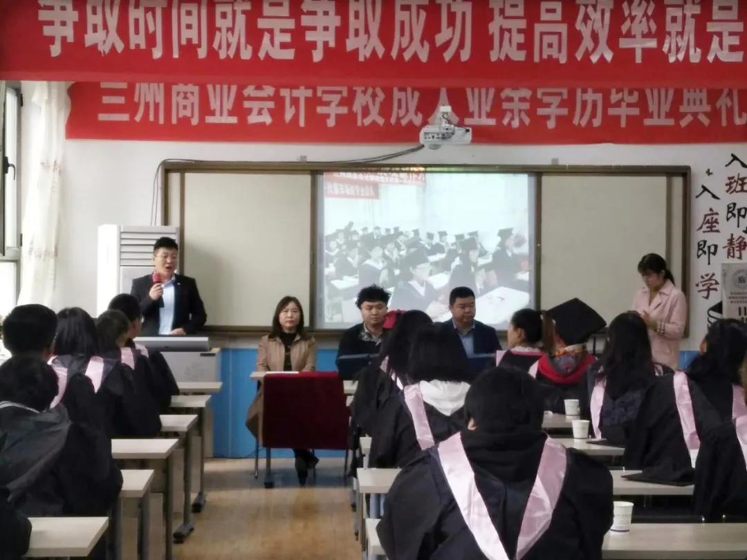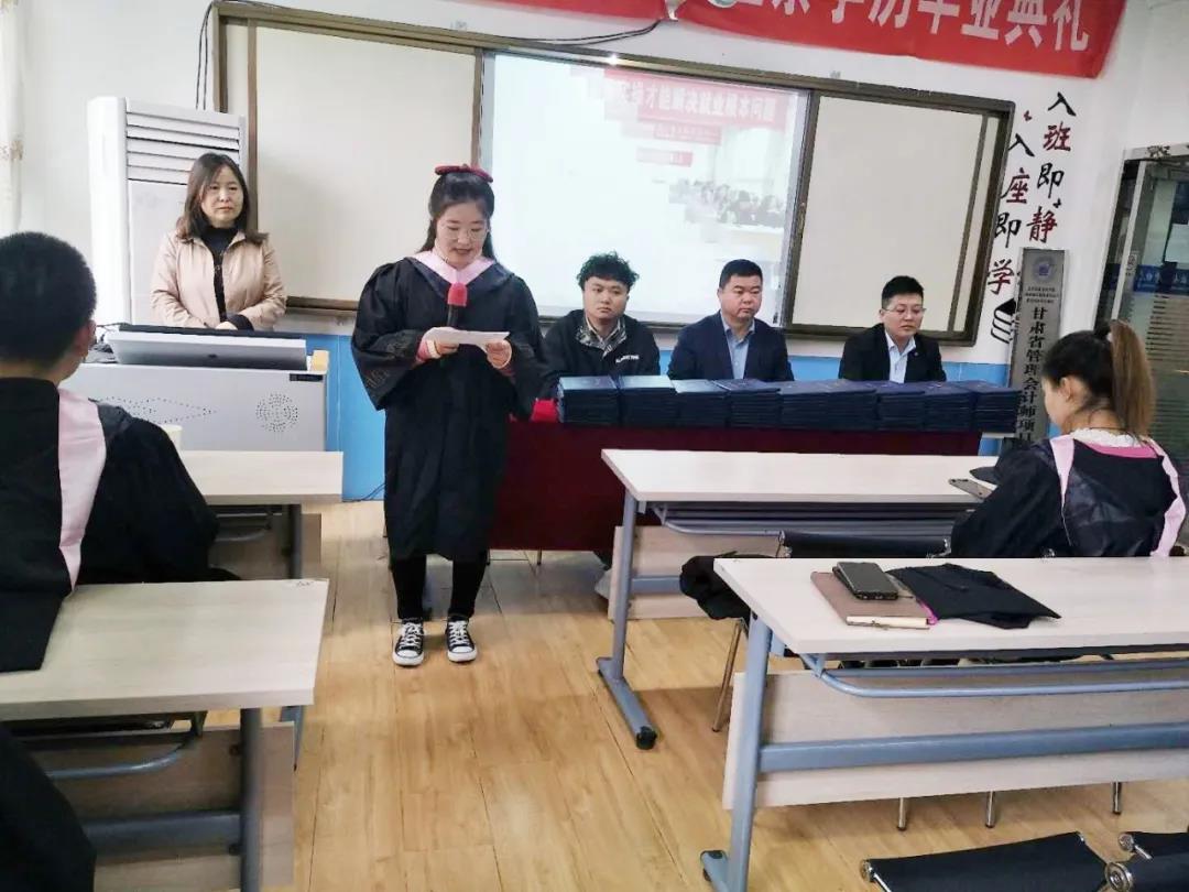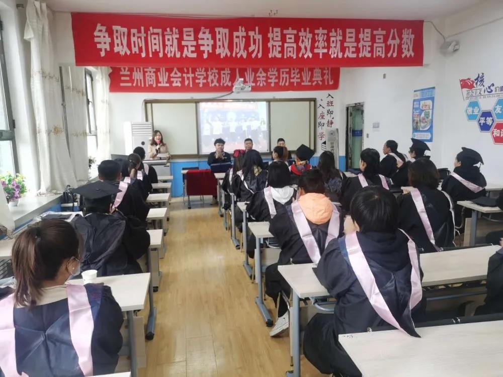 兰州商业会计学校学历部主任何俊杰在毕业典礼上介绍了兰商提供的全日制学历、自学考试、成人高考、网络教育、国家开放大学五种学历提升的途径,介绍了不同提升途径的学习内容和学习形式。何主任指出,兰州商业会计学校目前与多所高校合作以高起专,专升本、在读研究生为主的成人学历教育,专业齐全,选择的余地多,学习形式灵活,能够满足不同层次人员的学历提升需求,兰商也将继续打造更广阔的平台,助力成人学历提升,不让学历成为大家职业发展路途上的绊脚石。