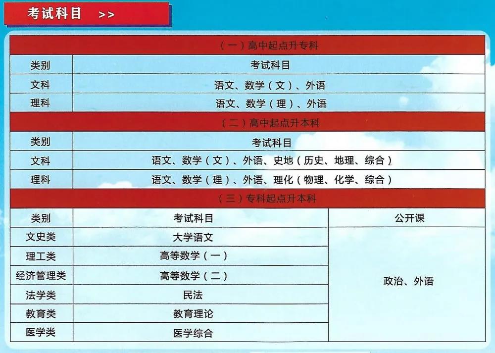 (高中起点升本、专科:上午 9:00—11:00,下午 14:30—16:30;专科起点升本科:上午 9:00—11:30,下午 14:30—17:00)。