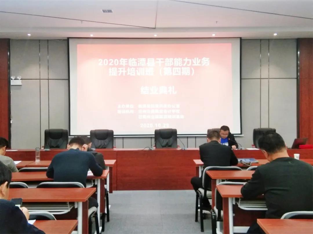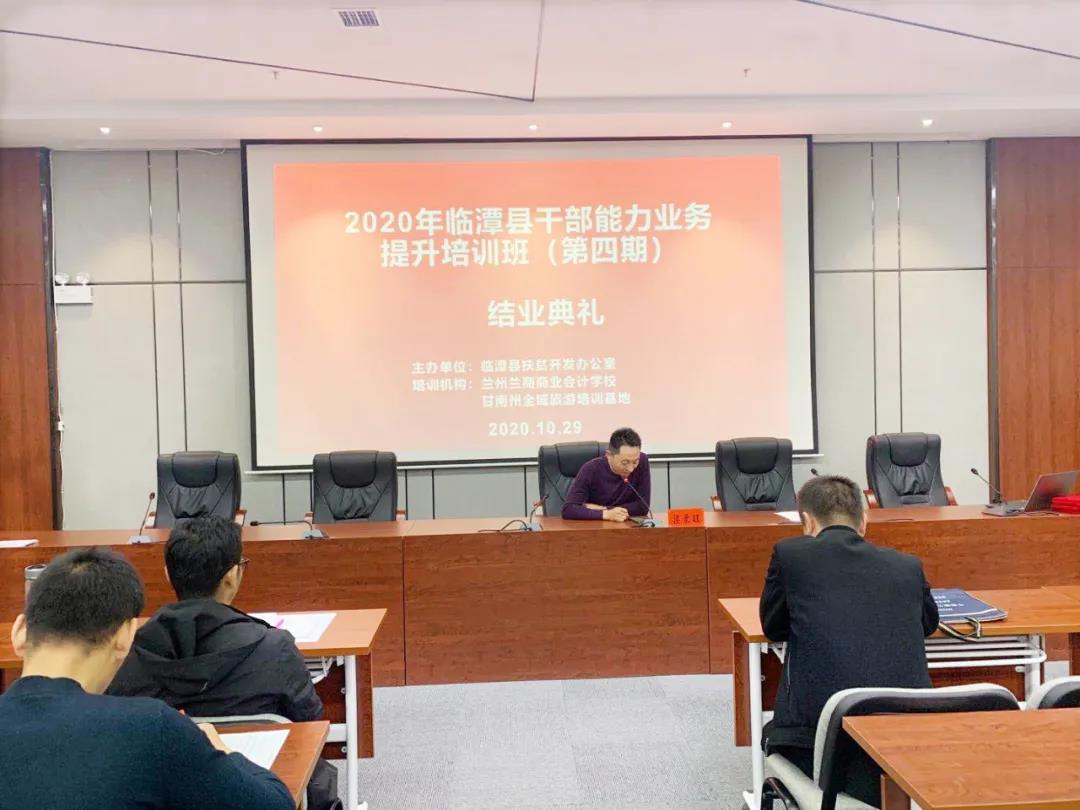 10月29日,由临潭县扶贫开发办公室主办,兰州兰商商业会计学校、 甘南州全域旅游培训基地承办的2020年临潭县干部能力业务提升培训班(第四期)在甘南州全域旅游培训基地顺利结业,参加培训的临潭县75位干部圆满完成了各项培训学习任务,顺利拿到了培训合格证书。