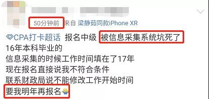今年中级报名的时候,收到来自真实考生的反馈,因为信息采集问题而导致被禁止报名!